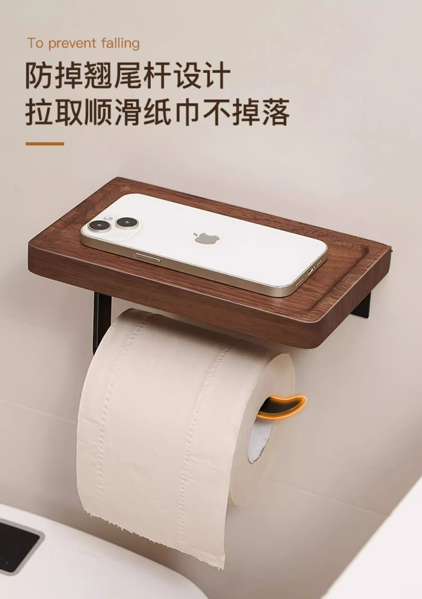 胡桃木卫生间厕纸盒浴室厕所纸巾盒免打孔洗手置物架卫生纸手纸盒
