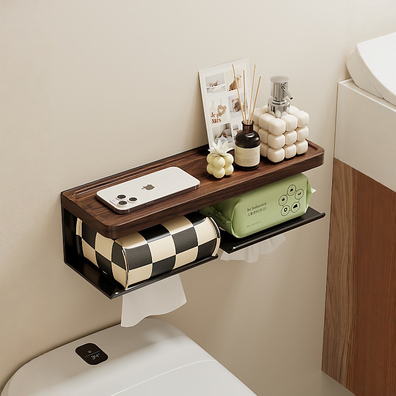 胡桃木トイレティッシュボックス棚壁掛け式引き出し箱浴室穴なしトイレ紙棚ロール紙棚