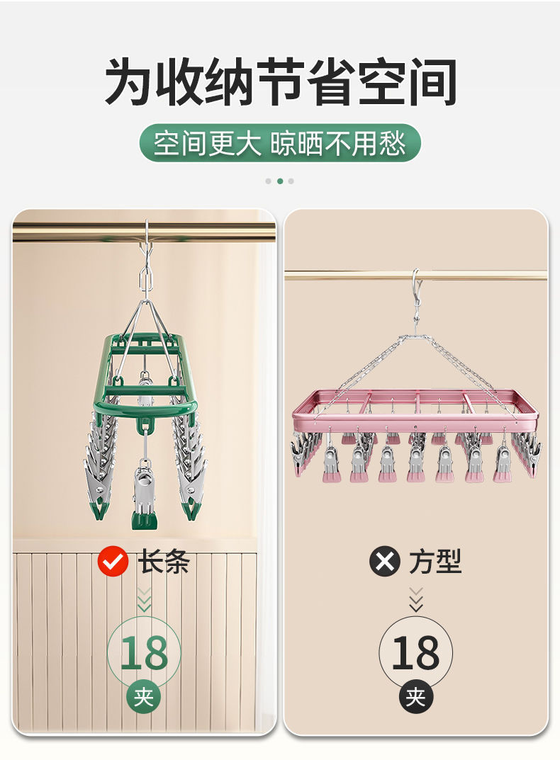 不锈钢20夹晾晒架多夹子学生宿舍晾衣架家用不锈钢袜子防风阳台