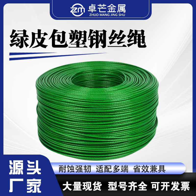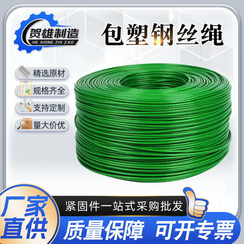 緑皮被覆ワイヤーロープ被覆ワイヤーロープ皮付きpvcワイヤーロープ被覆物干しロープ