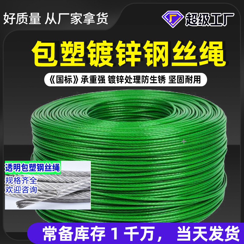 亜鉛メッキ被覆ワイヤーロープ3-24mm建築工業民間耐摩耗防錆コーティング被覆亜鉛メッキワイヤーロープ