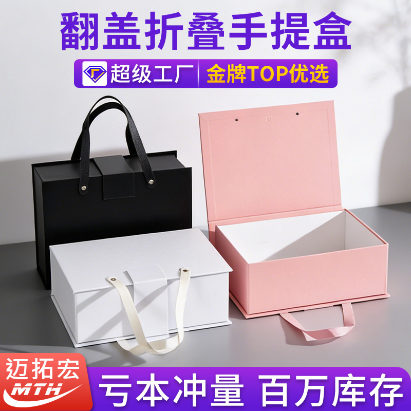 跨境现货手提一片式折叠礼盒磁吸翻盖书型包装盒礼品盒高档包装盒