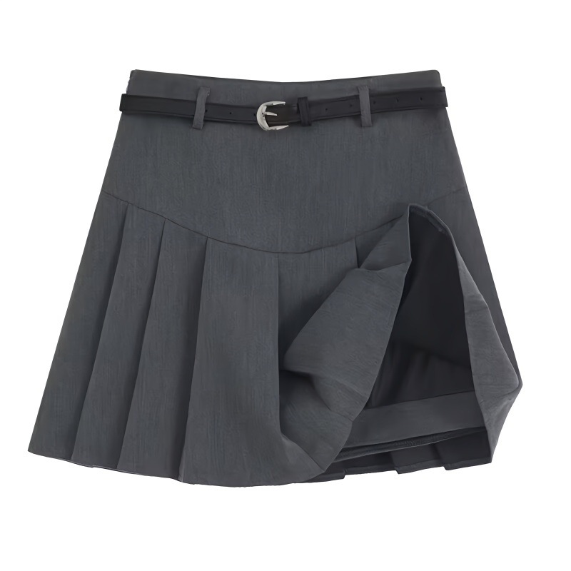 グレーのスカートのスカートの女性2025の新型の春の夏の韓国版の小さい背の高い腰はやせているa字の半身のスカートを現します。