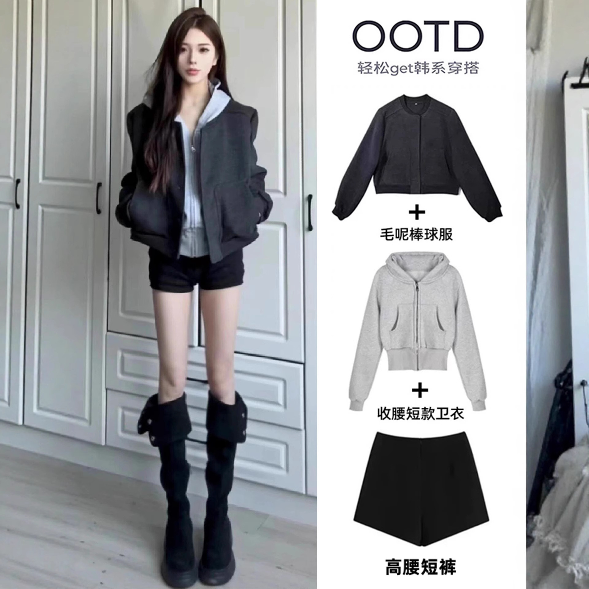 短款韩系显瘦穿搭冬装辣妹套装卫衣女款新款2026开衫春秋长袖女装