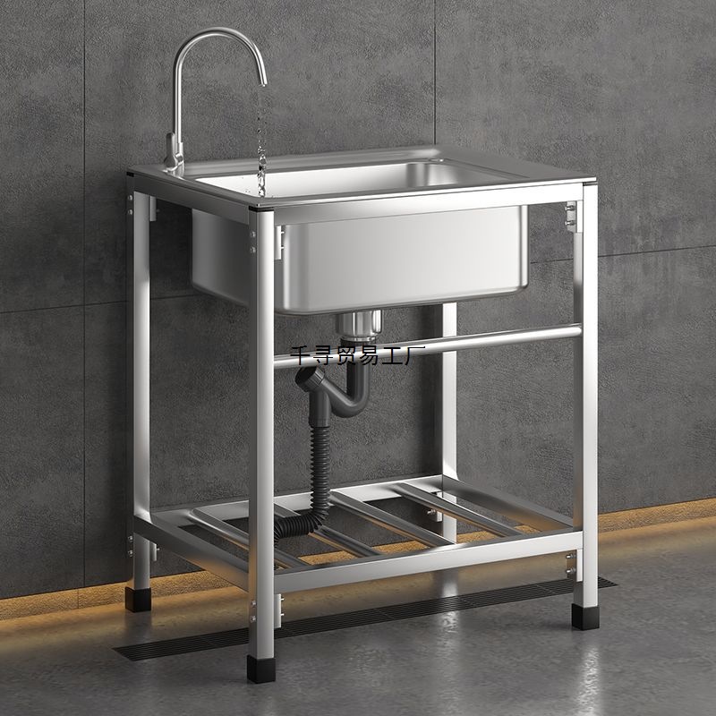 台所はステンレスの水を厚くして、二重のスタンド付きの洗面器の洗面器の食器棚を洗う