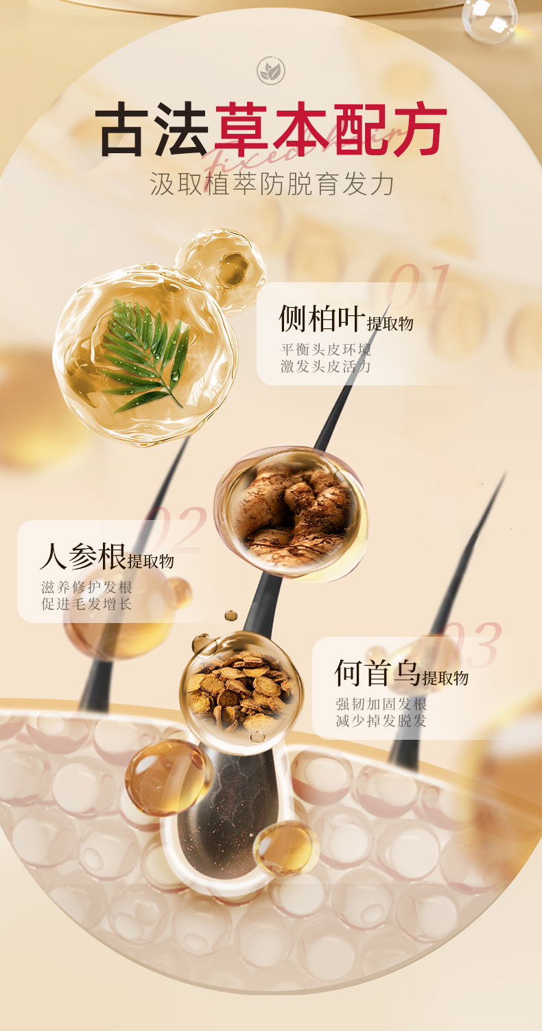 玫黛琳防脱固発精華液何首烏強靭発根改善発植物養発育発液卸売り