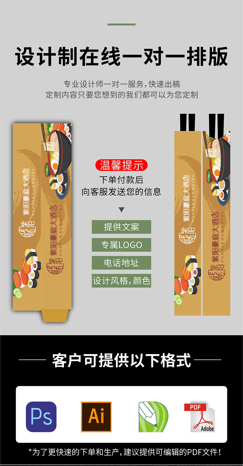 使い捨て広告箸セットカスタムロゴホテル飲食箸セット紙食器包装袋カスタム