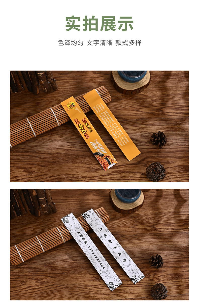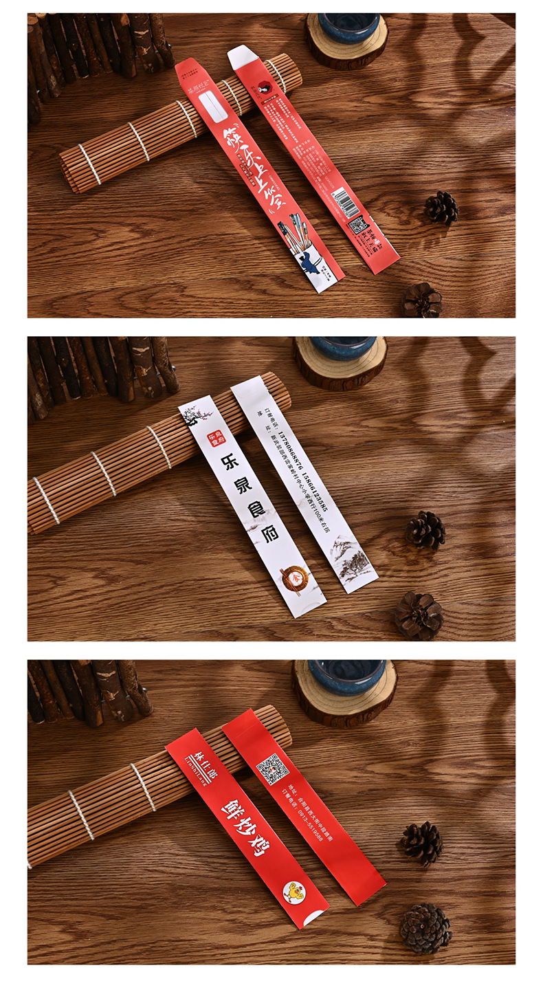 工場直販の紙製箸カバー、飲食店、鍋料理店、ホテル向け、使い捨て箸カバー、ロゴ印刷、環境に優しい