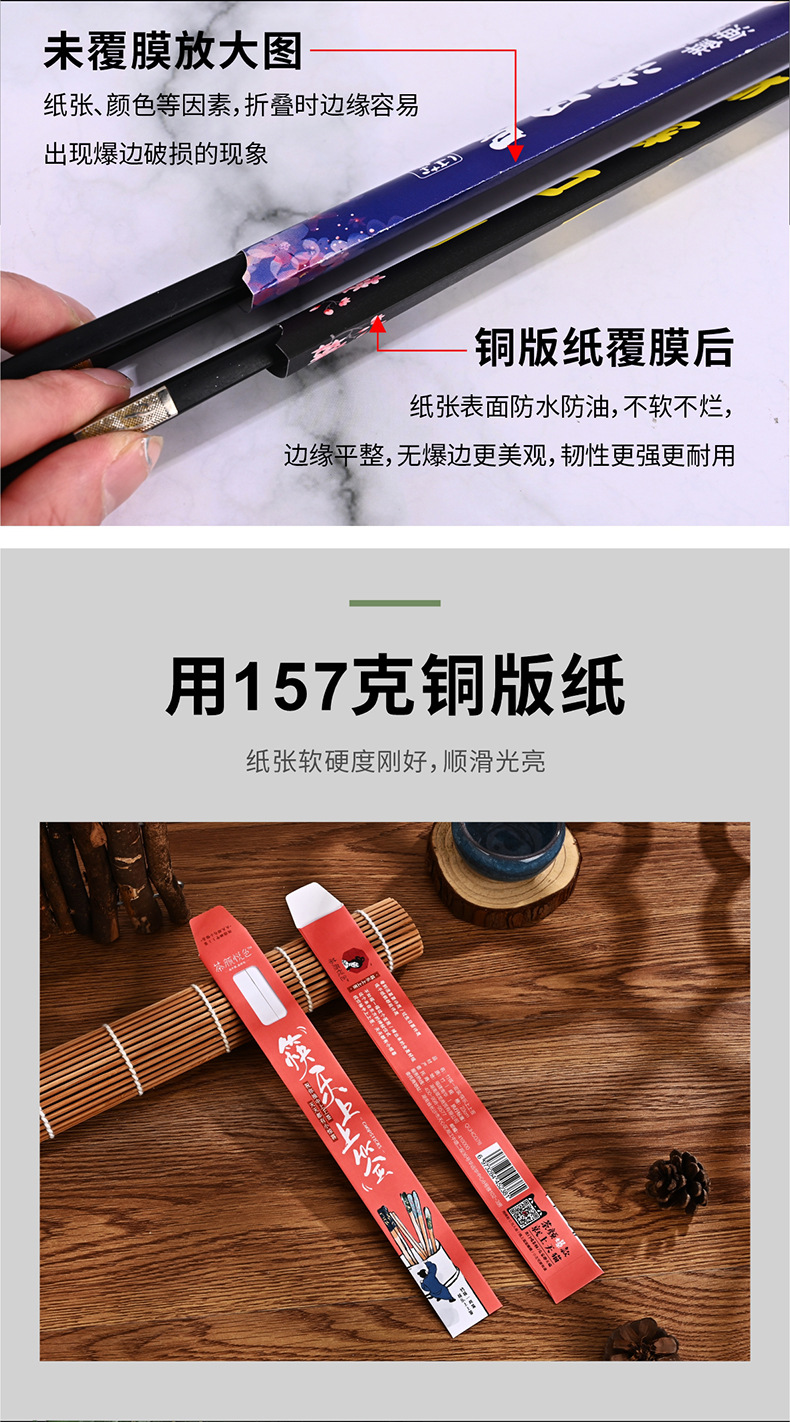 メーカー使い捨て箸セット商用ホテルレストラン銅版紙フィルムクラフト紙箸セット制定