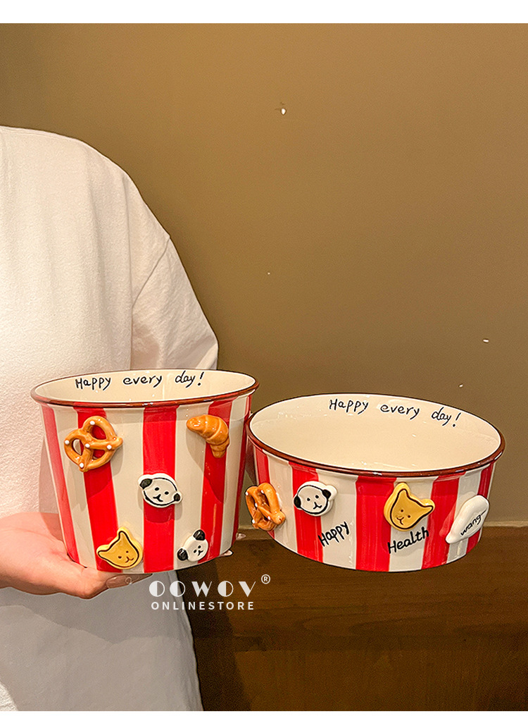 ボタンの子犬の陶磁器の軽食の碗の家庭用スープの碗の麺の碗の間食のフライドポテトの桶のポップコーンのサラダのヨーグルトの碗