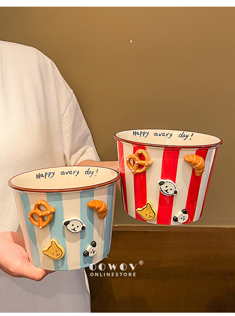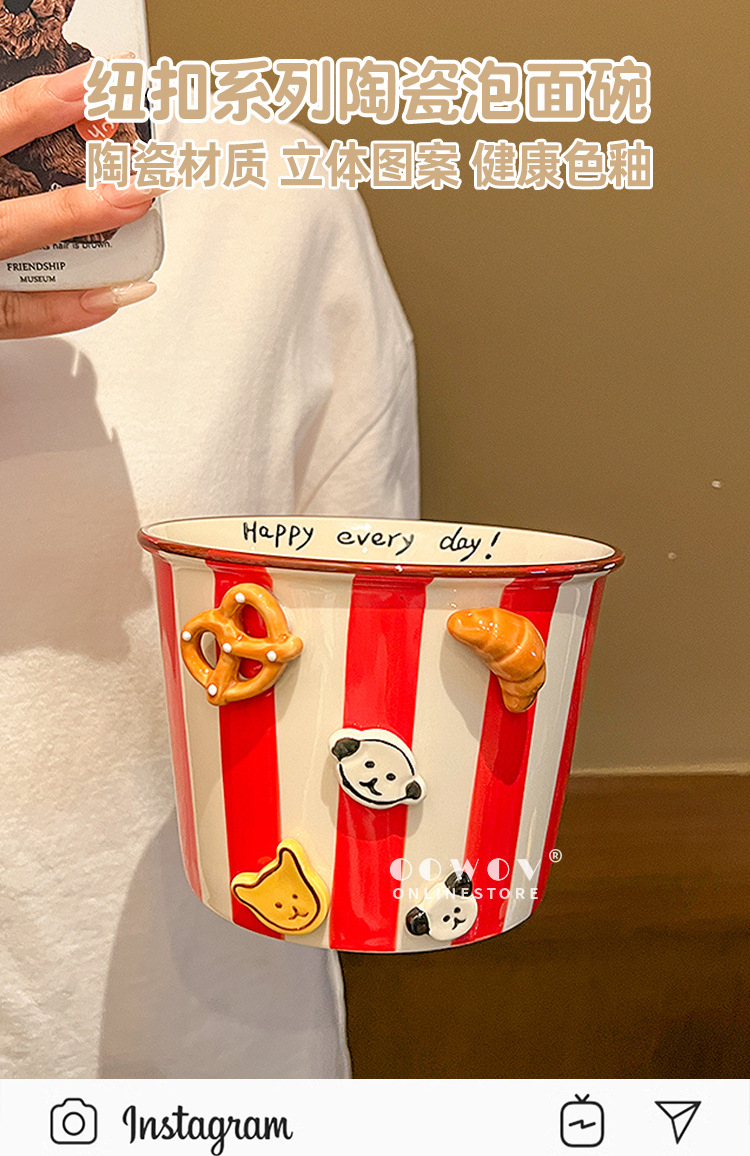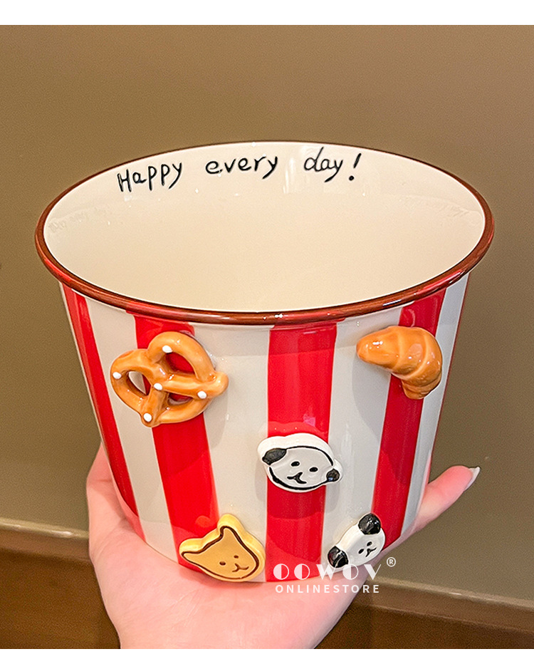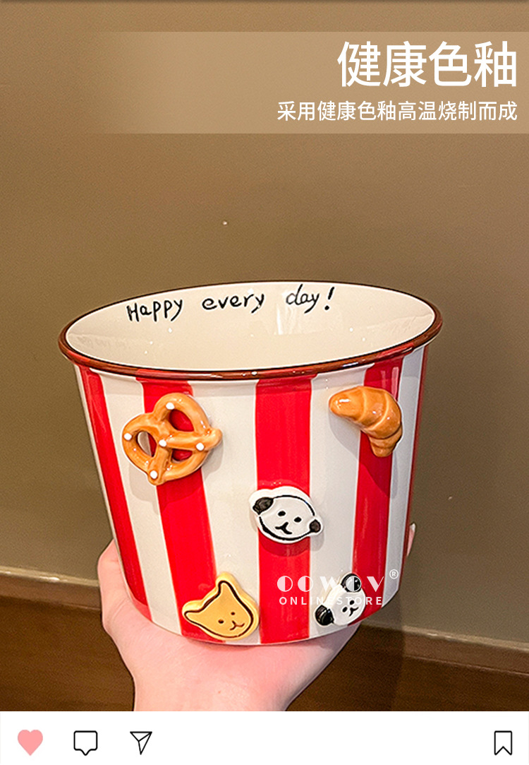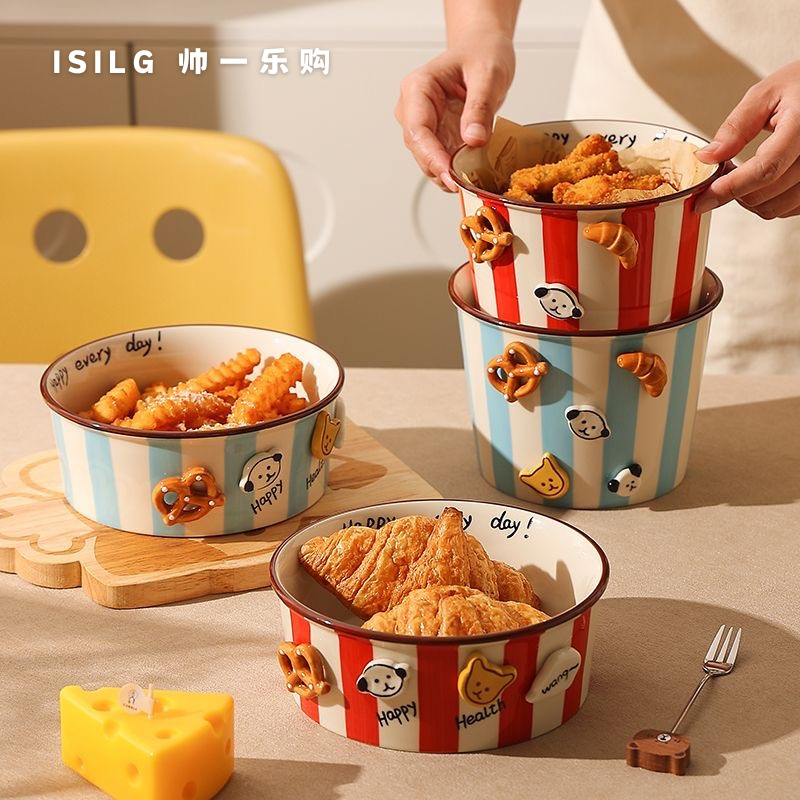 纽扣小狗陶瓷小食碗家用汤碗面碗零食炸鸡薯条桶爆米花沙拉酸奶碗