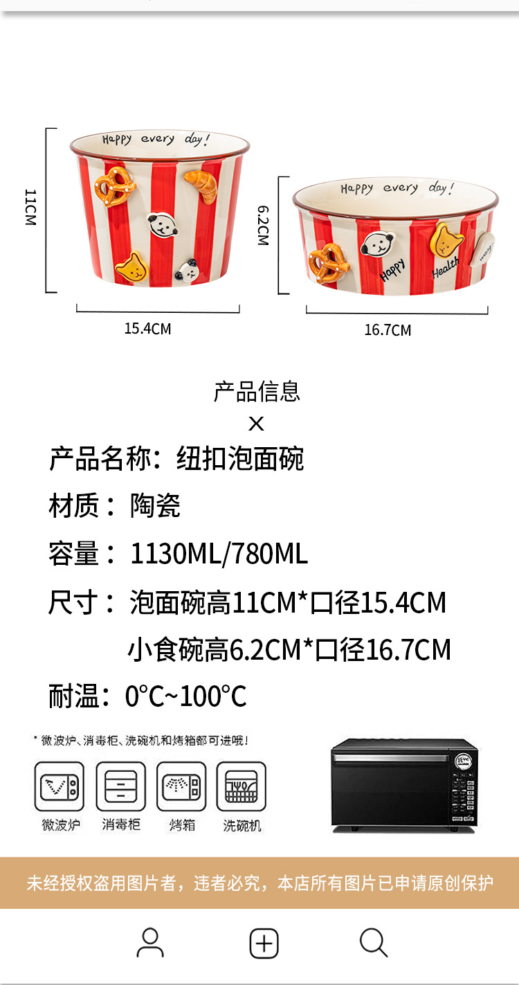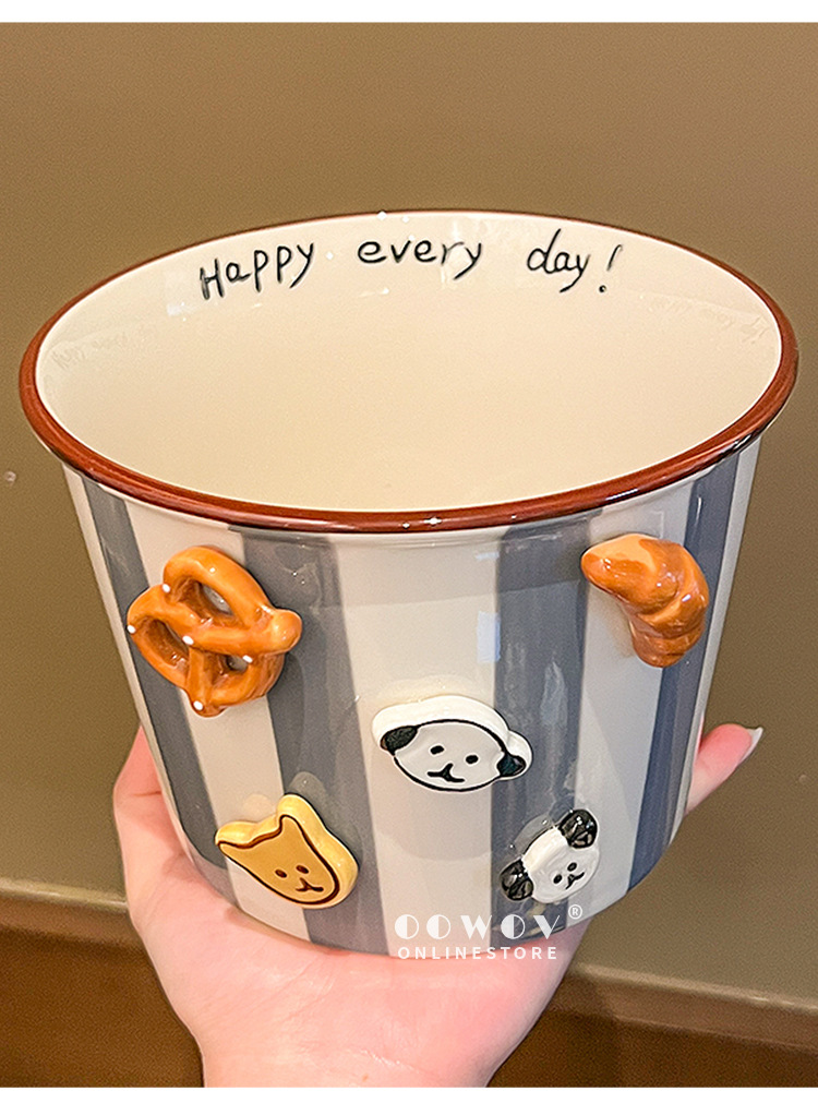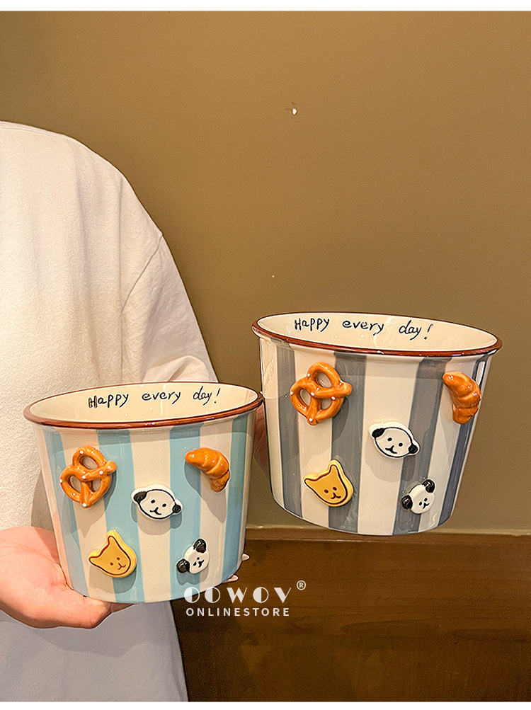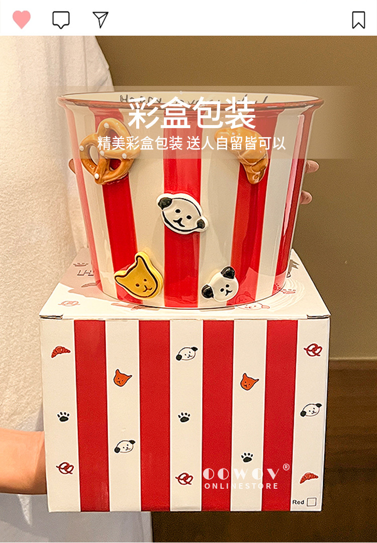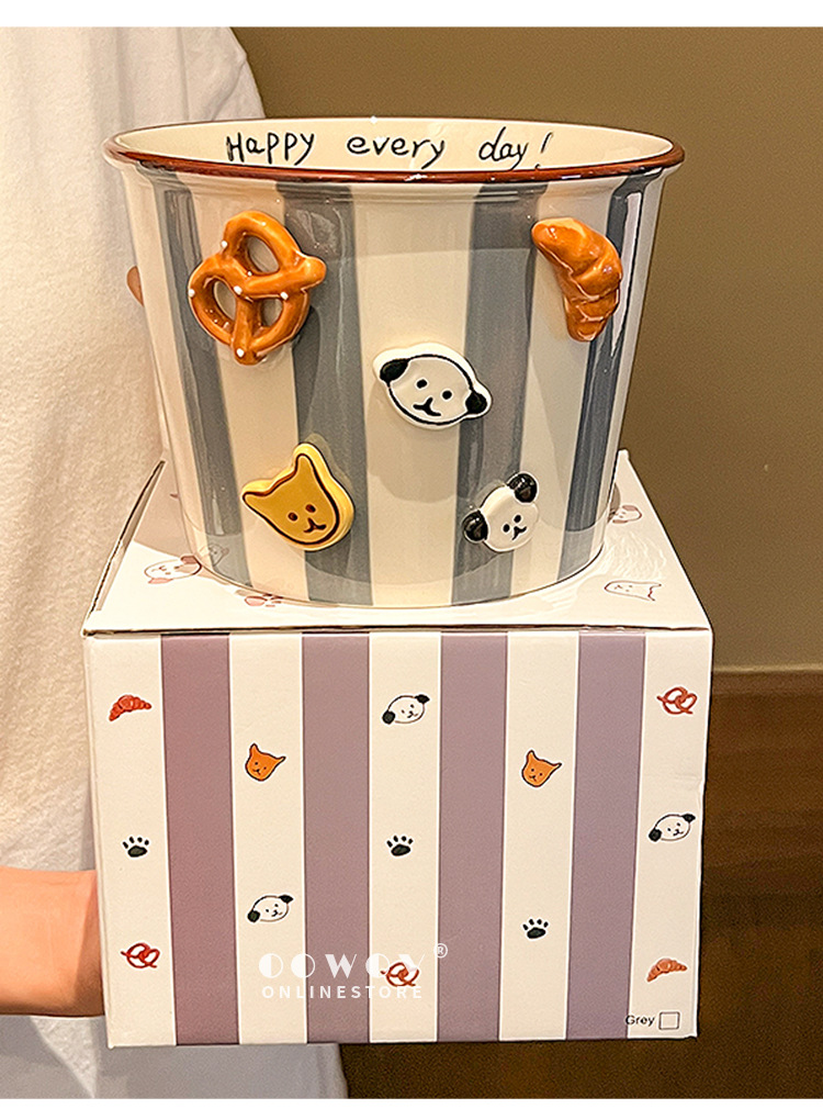 纽扣小狗陶瓷小食碗家用汤碗面碗零食炸鸡薯条桶爆米花沙拉酸奶碗