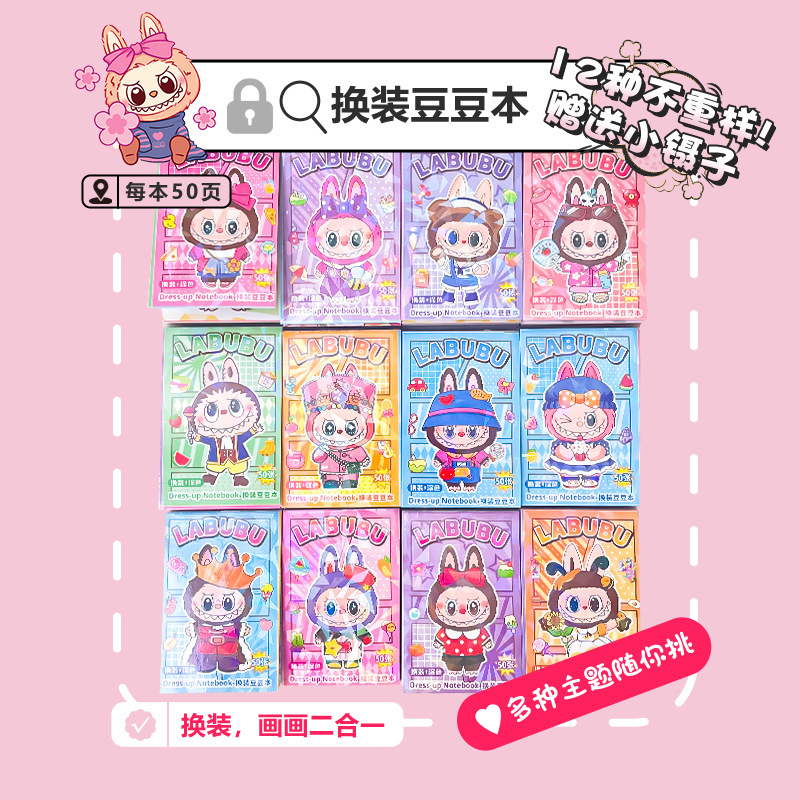 新款爆卖卡皮三丽鸥labubu换装豆豆本创意装饰奖品口袋本可爱文具
