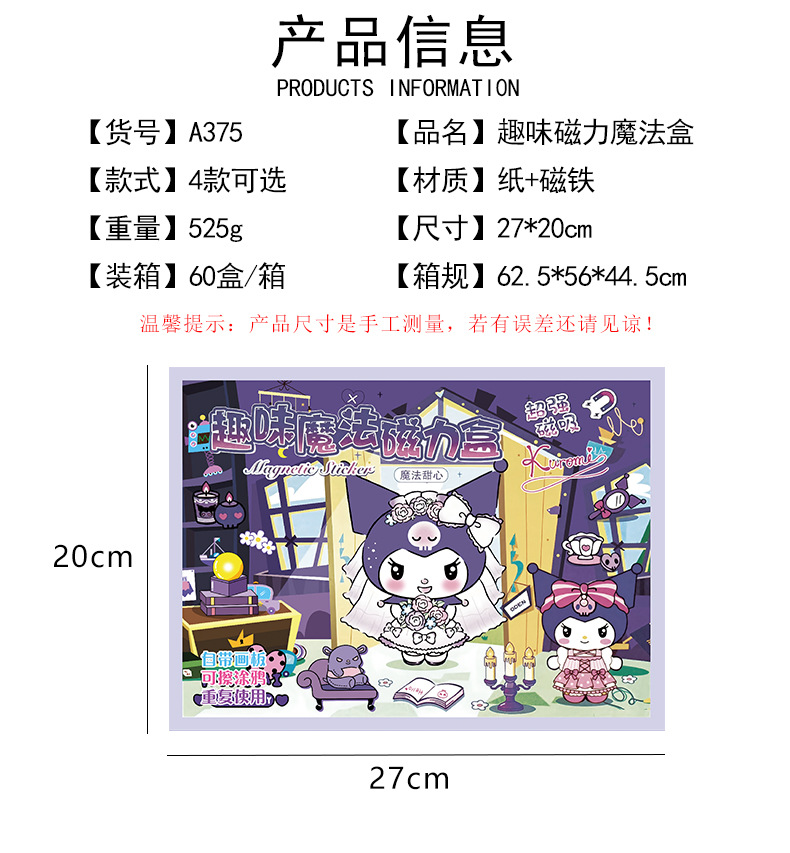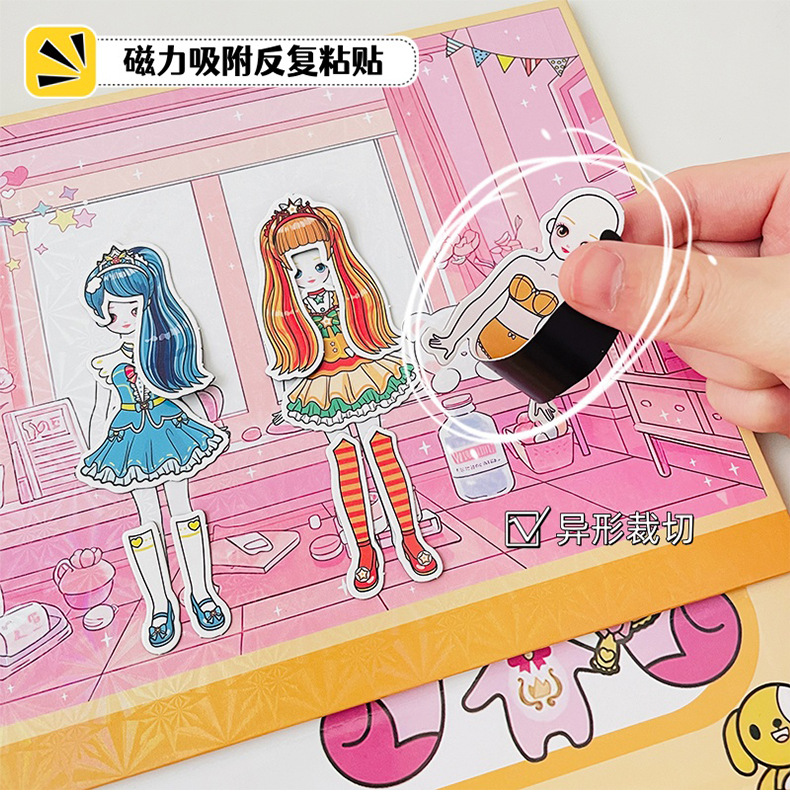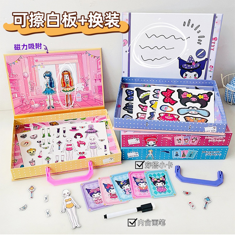 趣味魔法磁力箱クロミエサ萌可磁力換装女の子絵画シール玩具収納箱