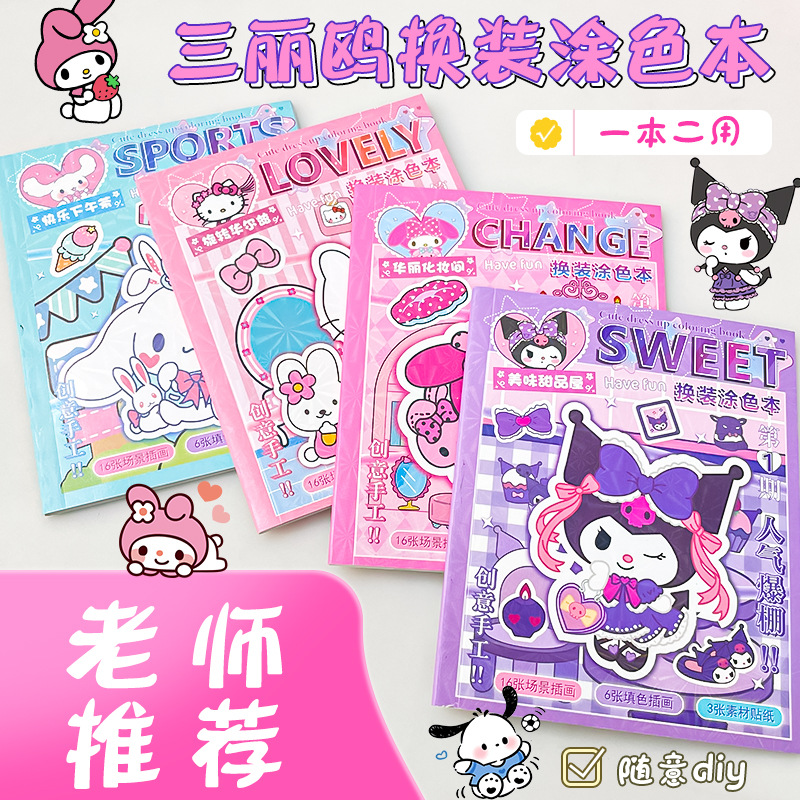 三丽鸥库洛米美乐蒂二合一涂色书女孩卡通diy免裁剪换装贴纸书