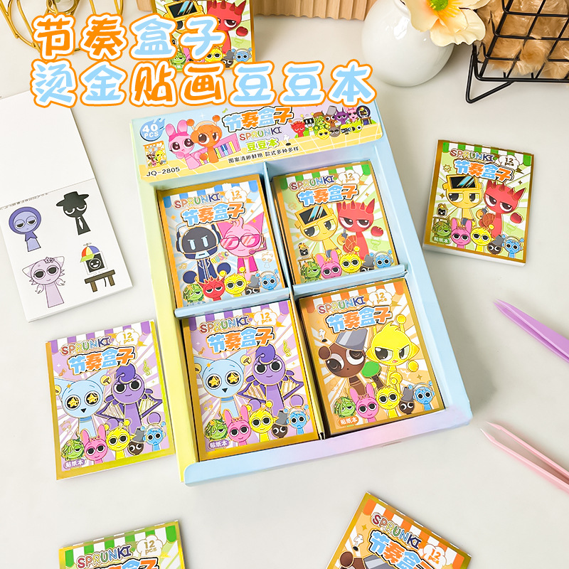 节奏盒子刮画本卡通可爱免裁剪儿童创意手账素材贴纸豆豆本填色本