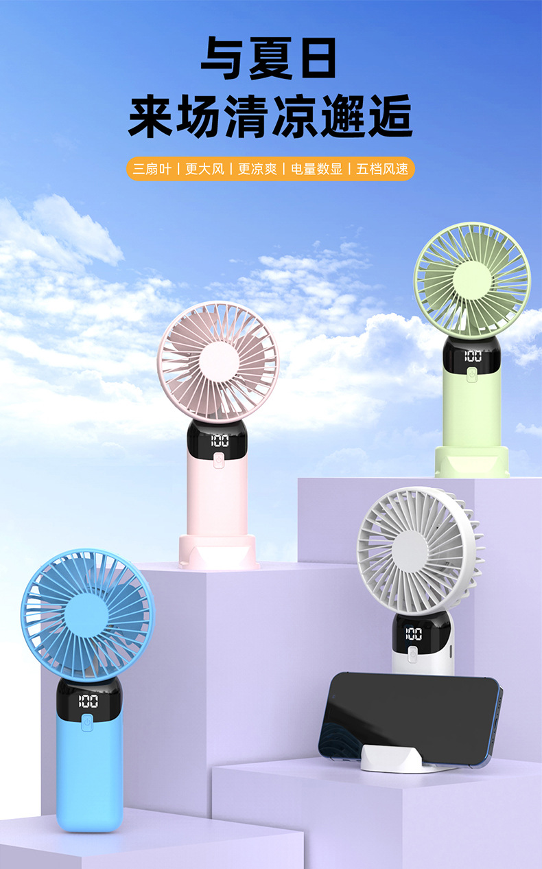 USBハンドヘルドファン ミニポータブルファン デジタルディスプレイ オフィス 学生ギフト 小型電気製品 卸売 ポータブル