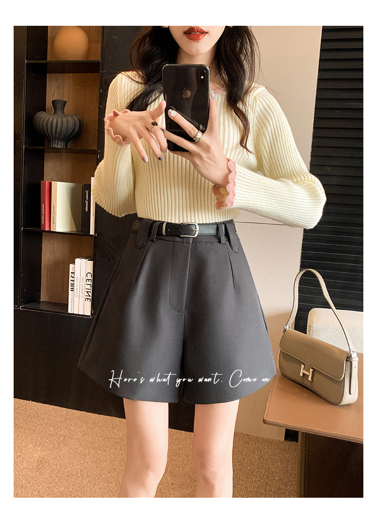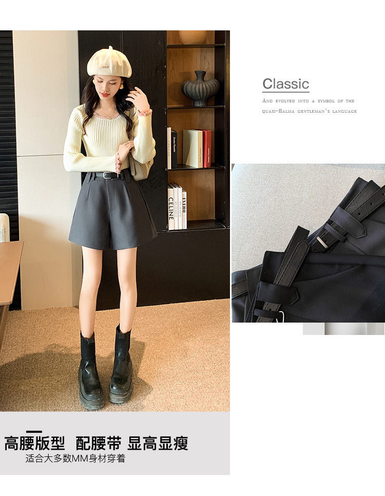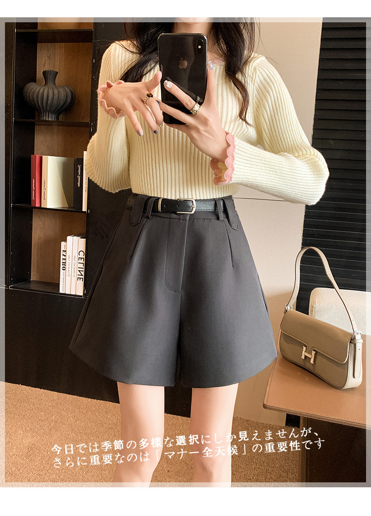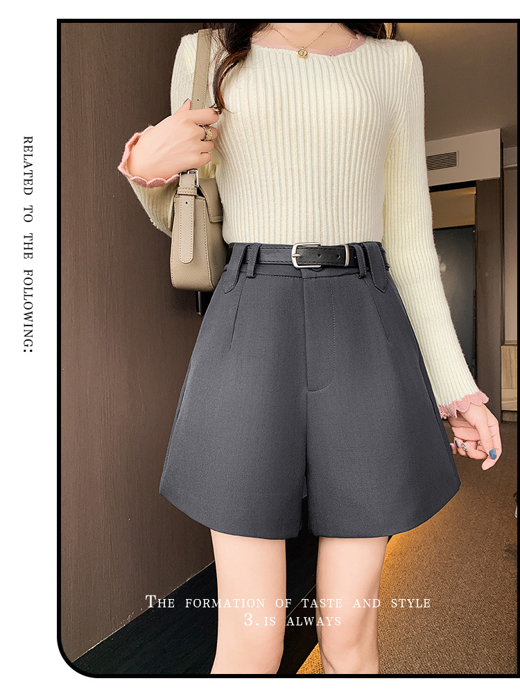 グレースーツショーツレディース2025春秋新作アウターウェア小柄ハイウエストAラインカジュアルルーズワイドレッグブーツパンツ