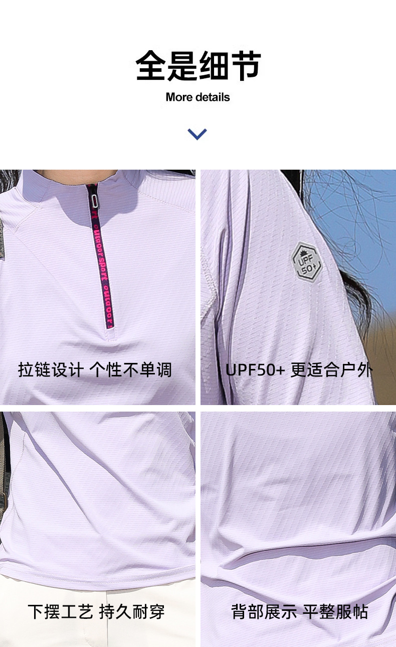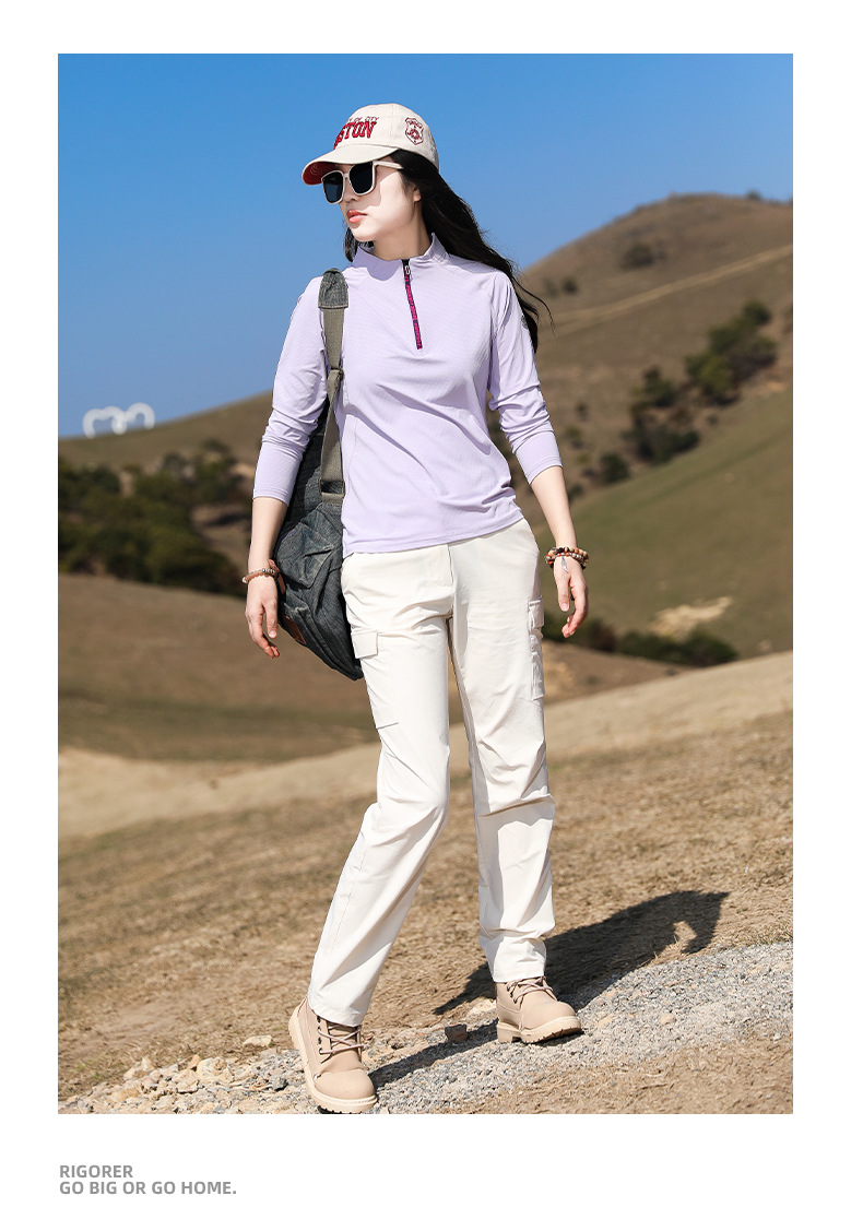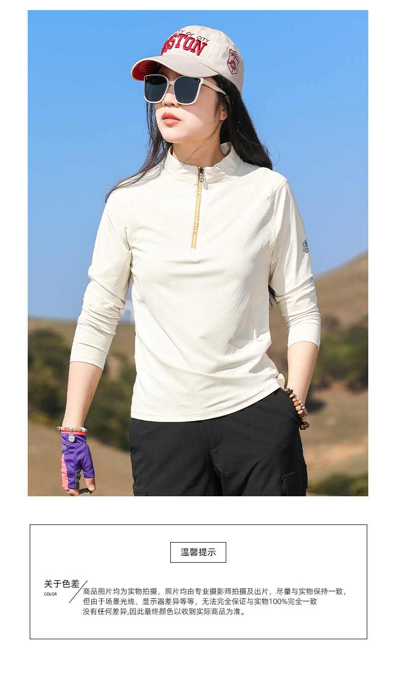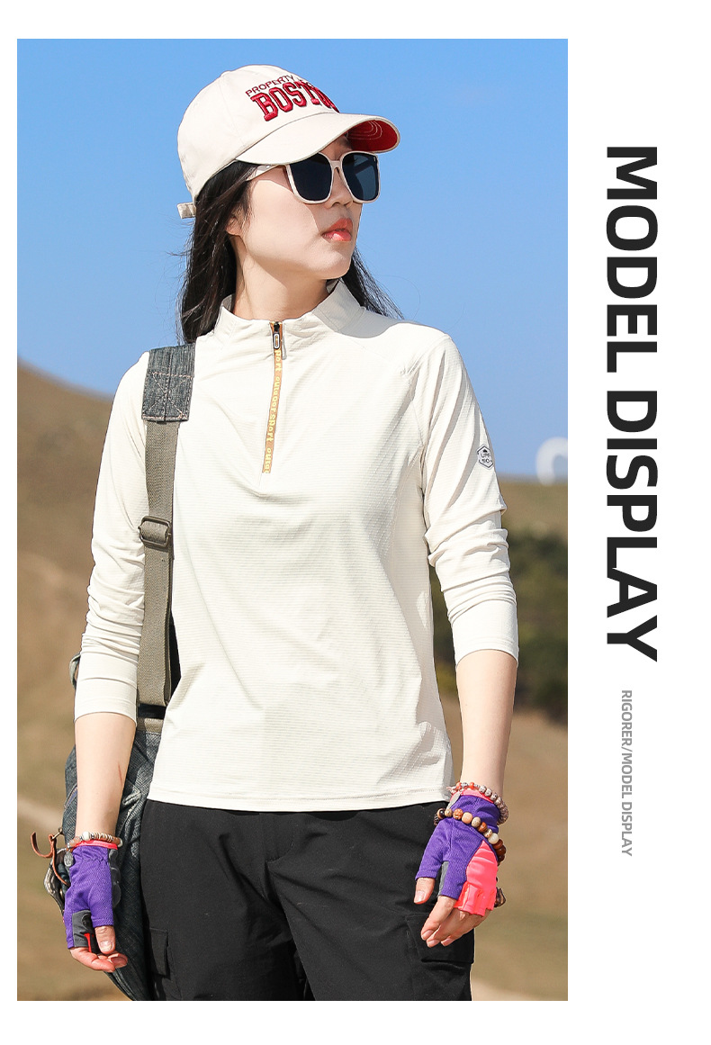 戸外春夏日焼け止め登山徒歩弾力快乾衣立襟ランニングフィットネス通気長袖速乾tシャツ女