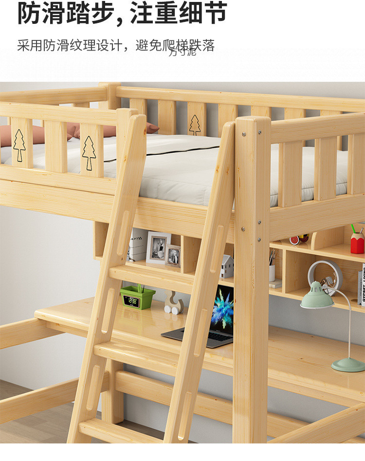 2025新款实木儿童上下床高低床梯柜组合成人高架床简约现代省空间