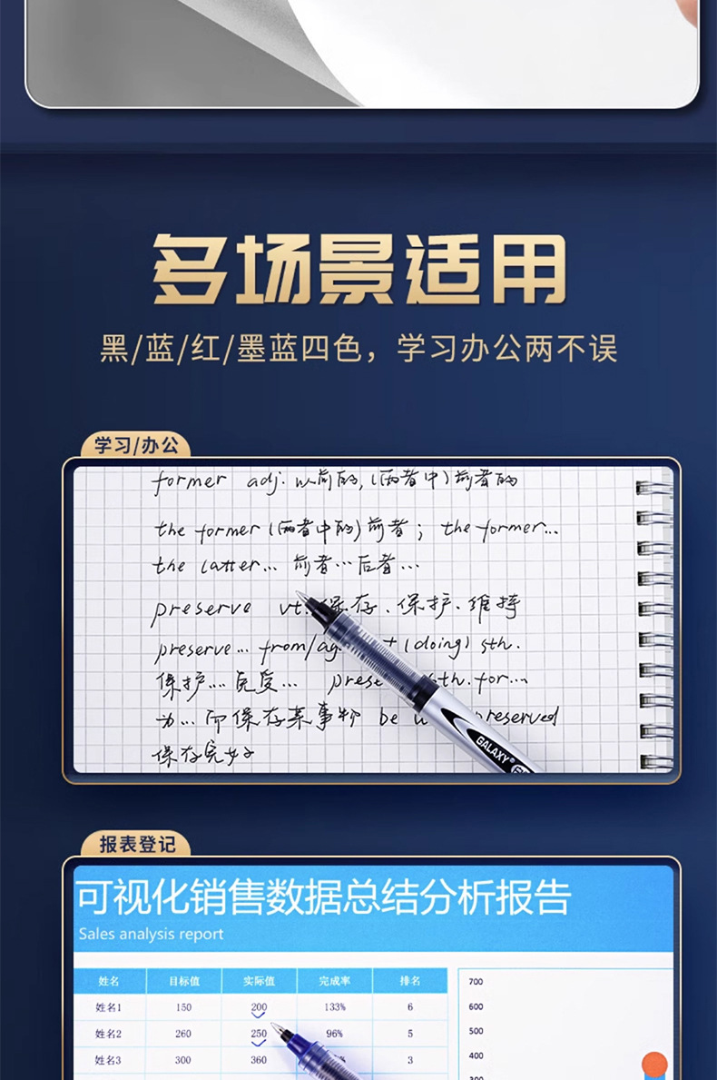 白雪ストレート液体ボールペン白雪ペン学生水ペン試験ペンカラー針管署名ペンオフィス文具
