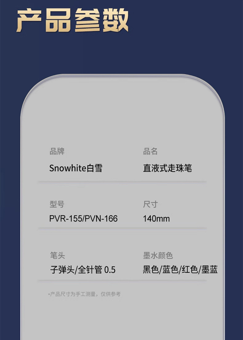 白雪直液式ボールペンPVR-155学生用弾頭中性ペン事務サインペン卸売り