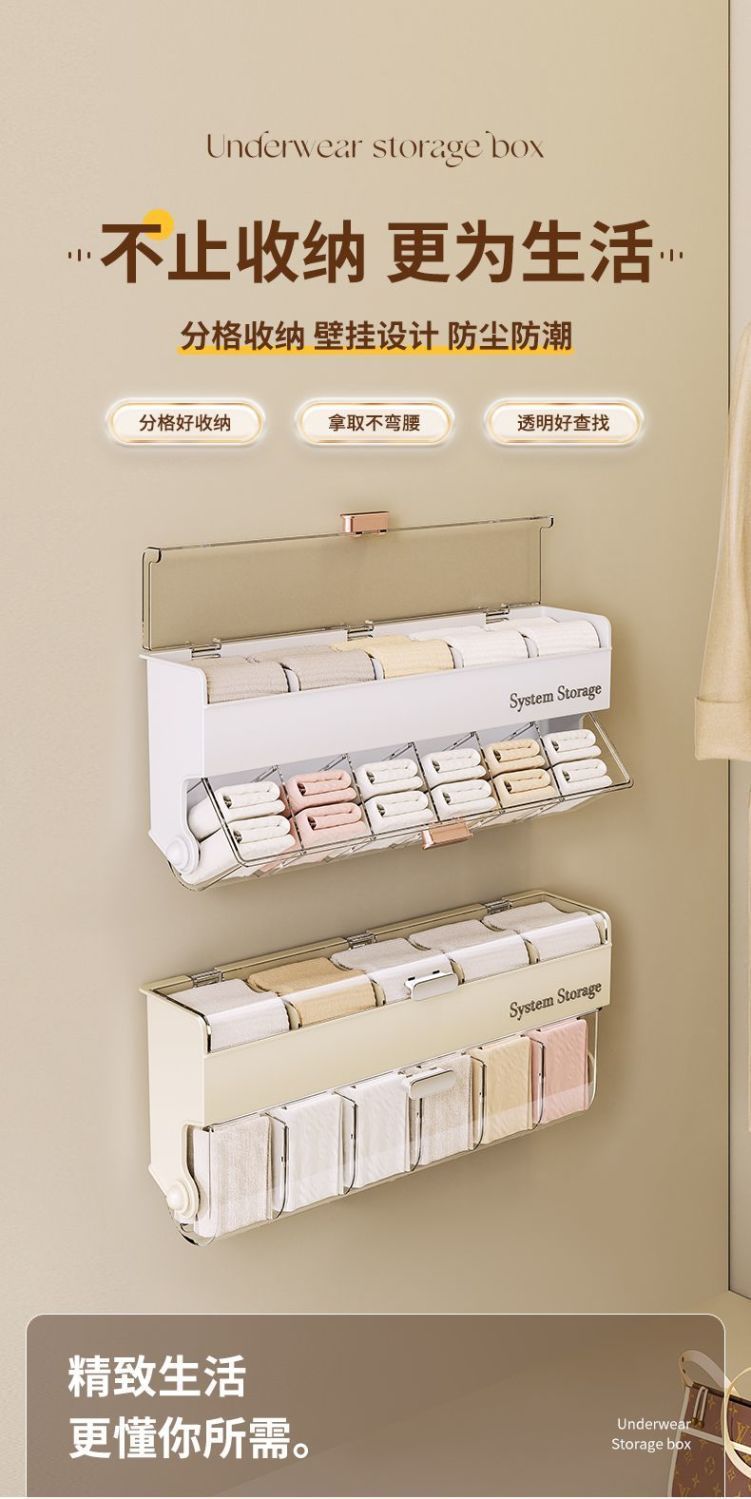 下着収納ボックス壁掛け式穴なし靴下収納家庭用ベビー分格収納壁掛けカバー収納ボックス