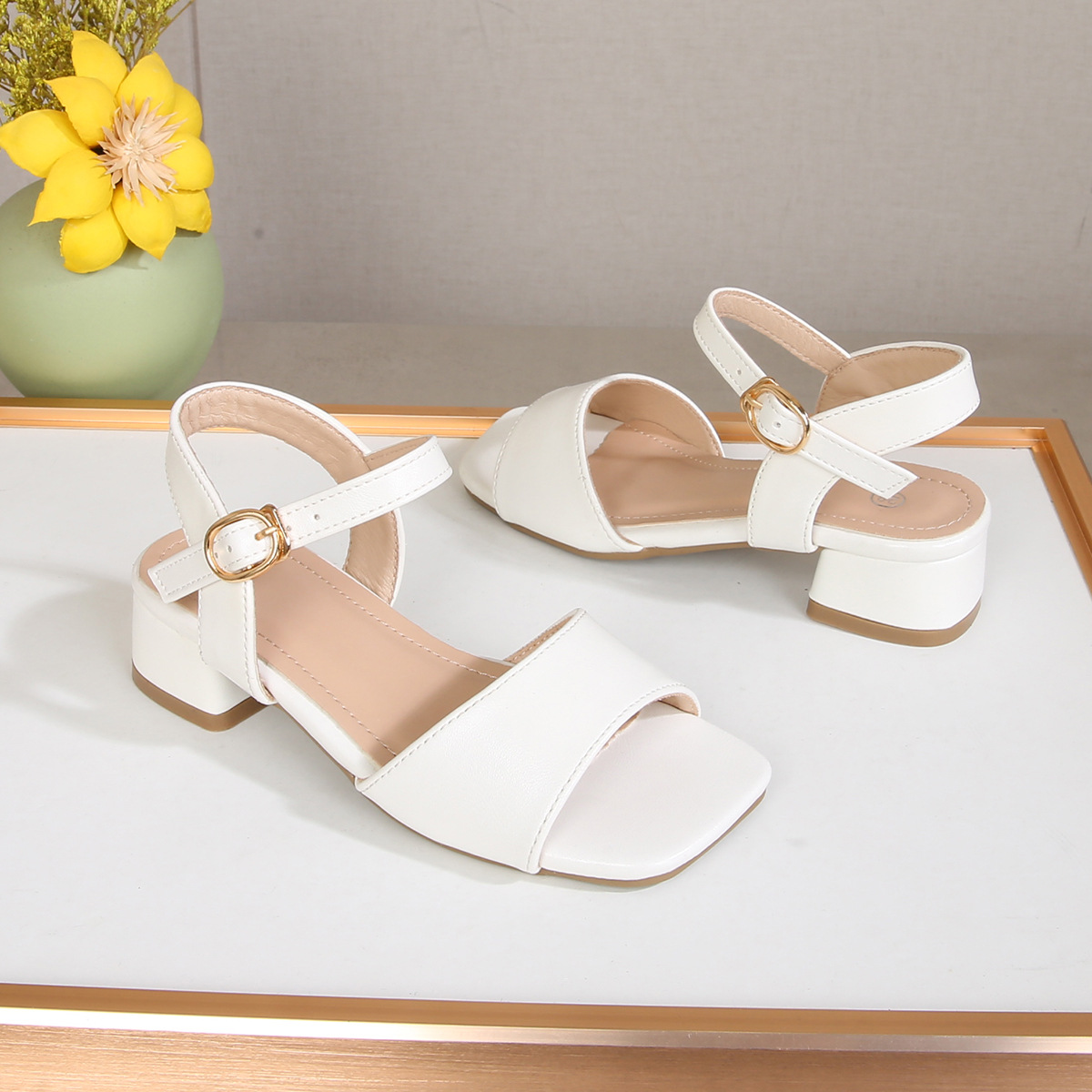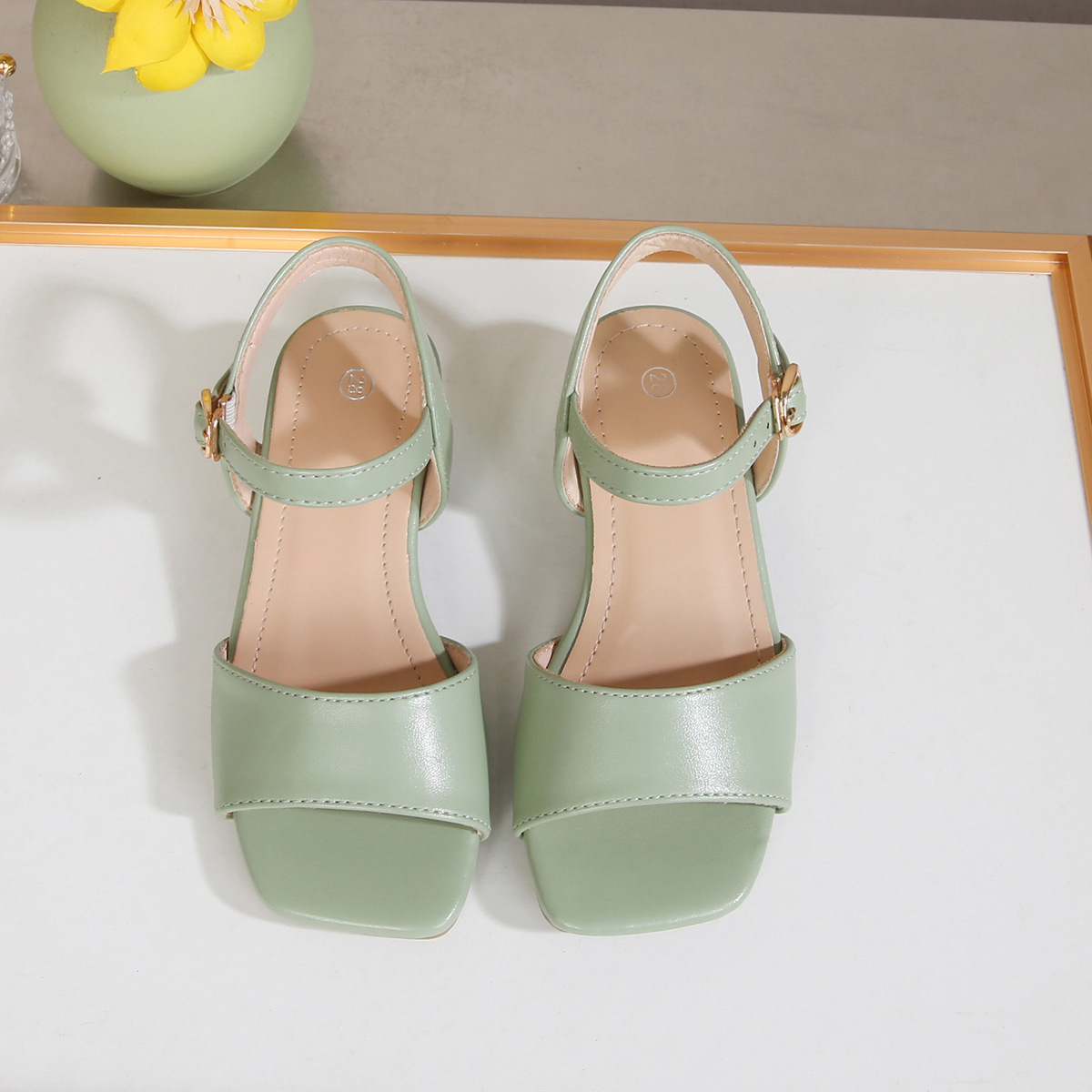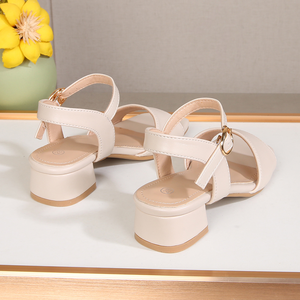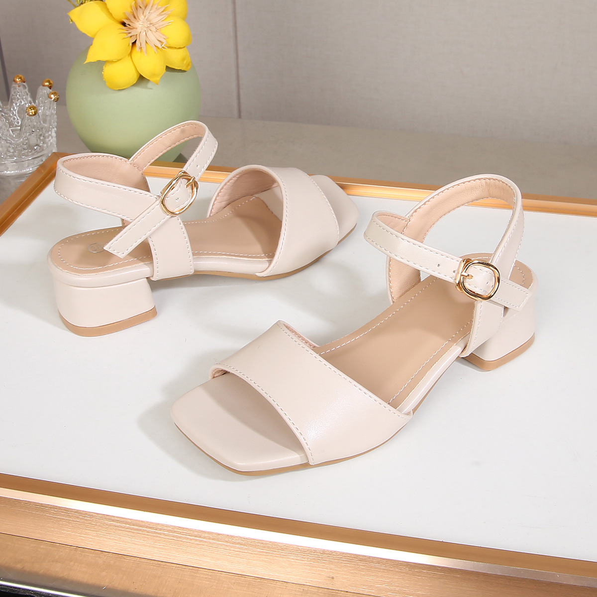 スクエアトゥワンラインバックルヨーロッパとアメリカの貿易ハイヒールサンダル 2025 新しい厚いヒールファッションガールズサンダル