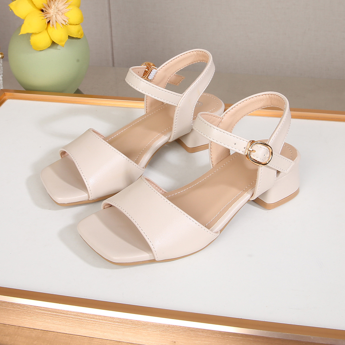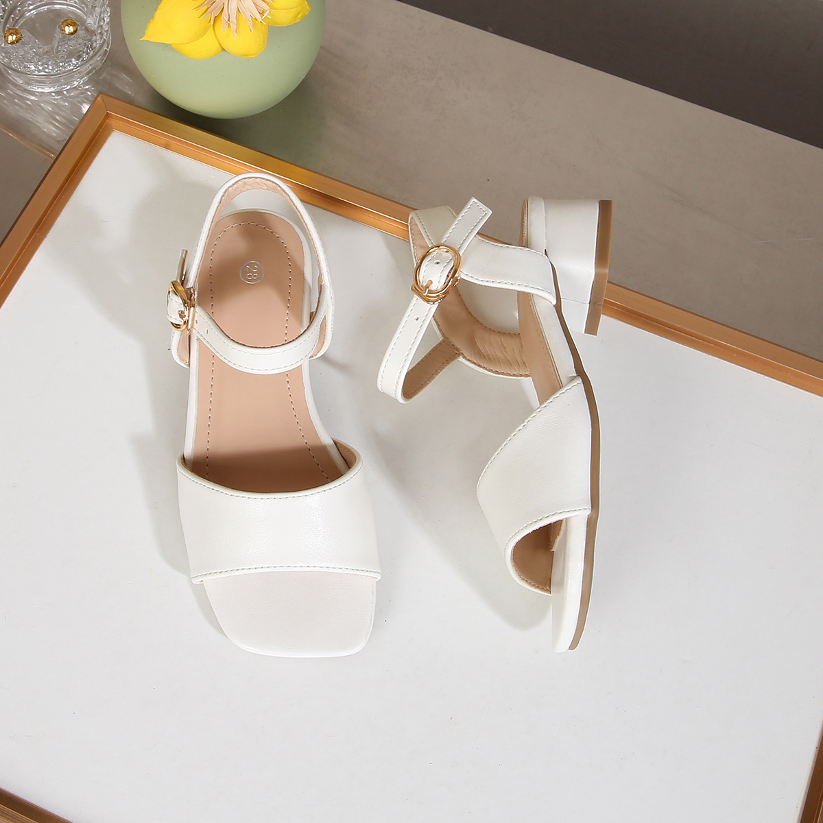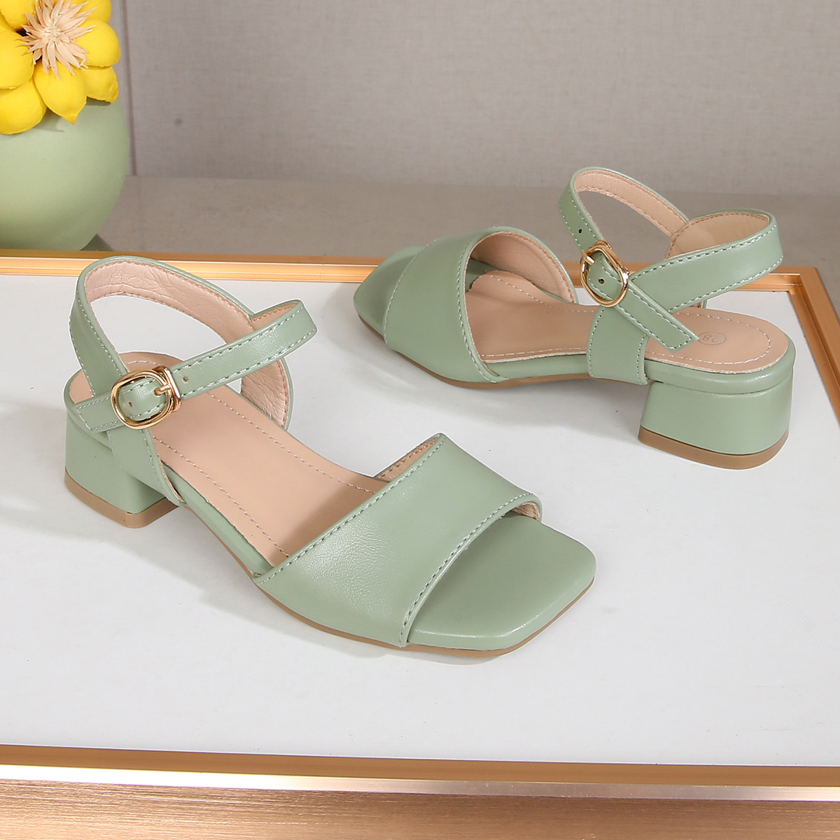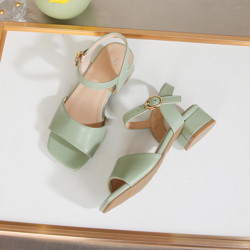スクエアトゥワンラインバックルヨーロッパとアメリカの貿易ハイヒールサンダル 2025 新しい厚いヒールファッションガールズサンダル