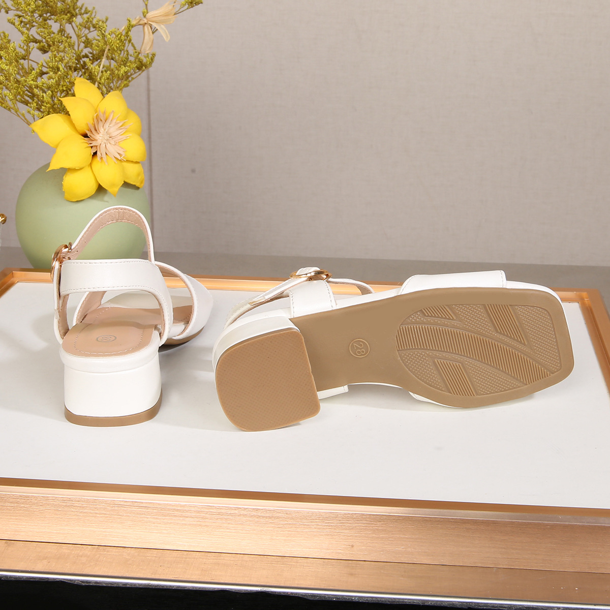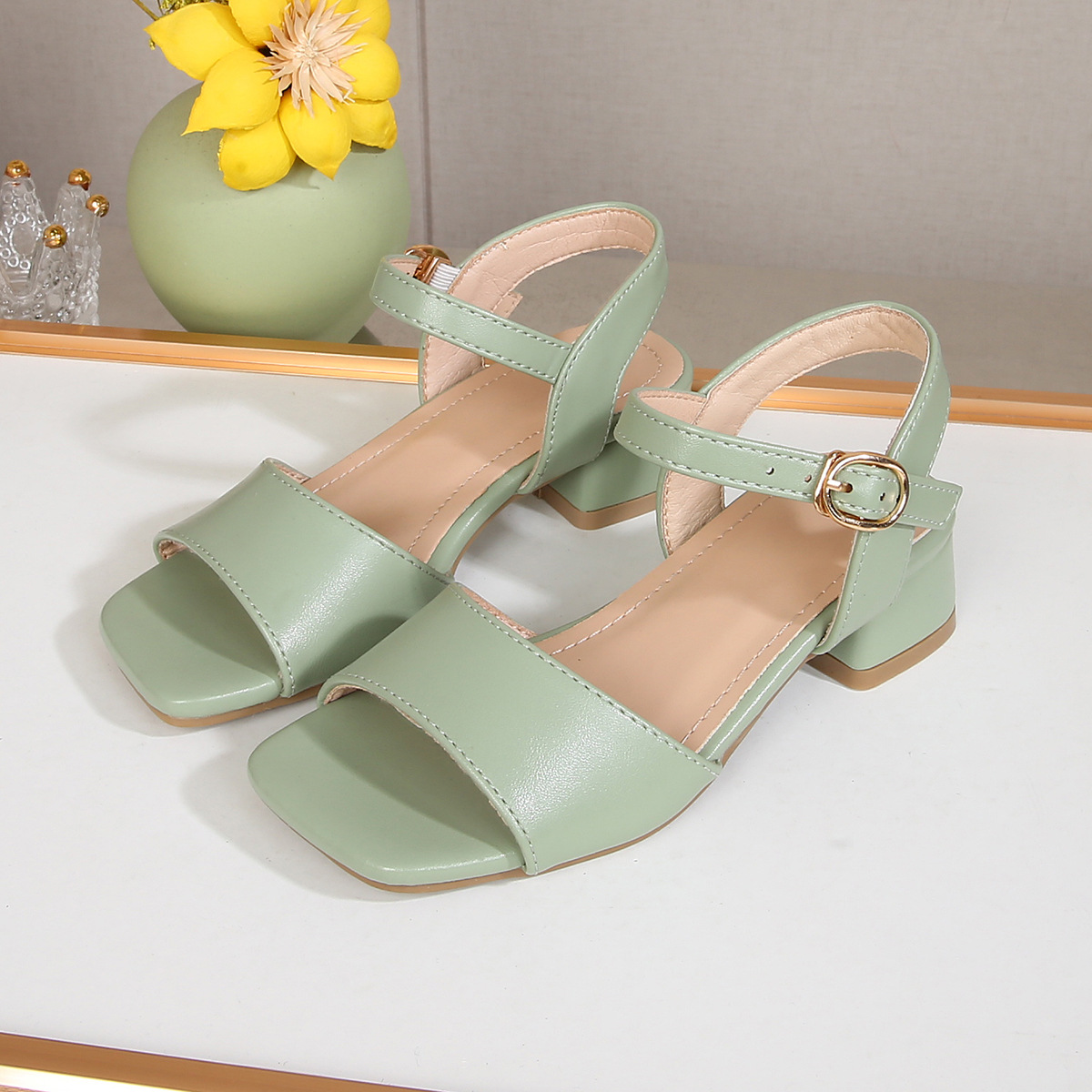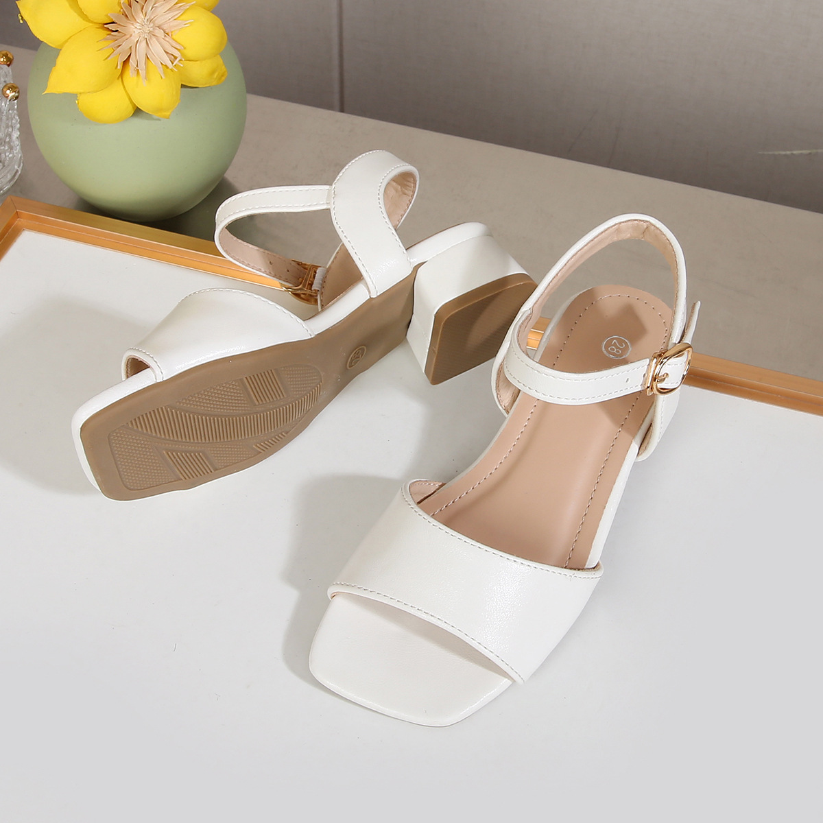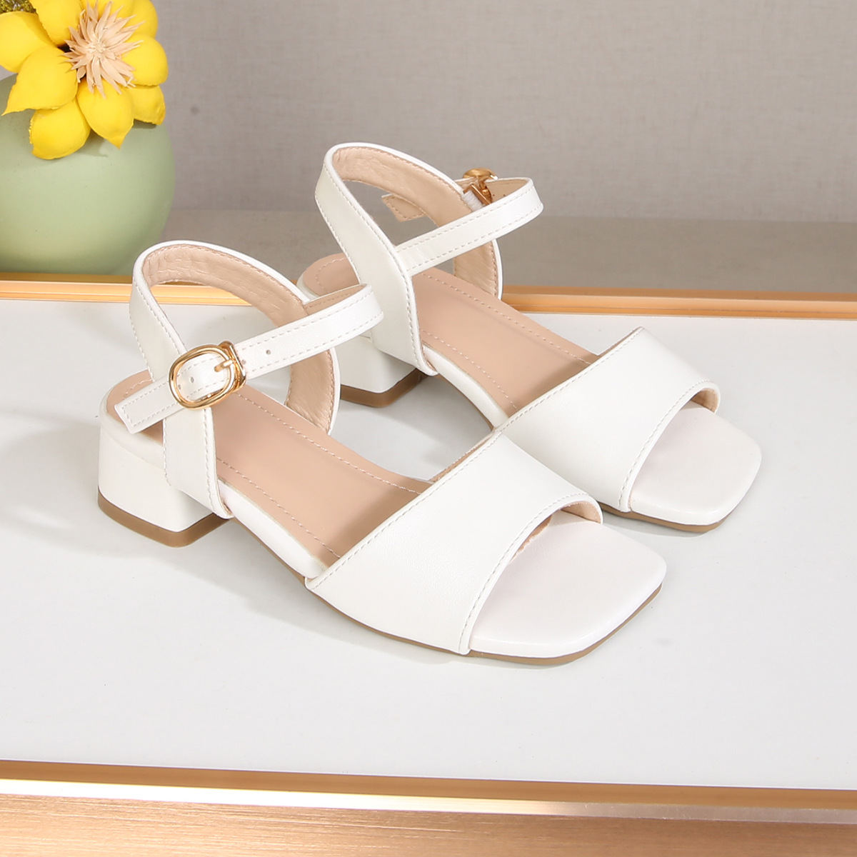 スクエアトゥワンラインバックルヨーロッパとアメリカの貿易ハイヒールサンダル 2025 新しい厚いヒールファッションガールズサンダル