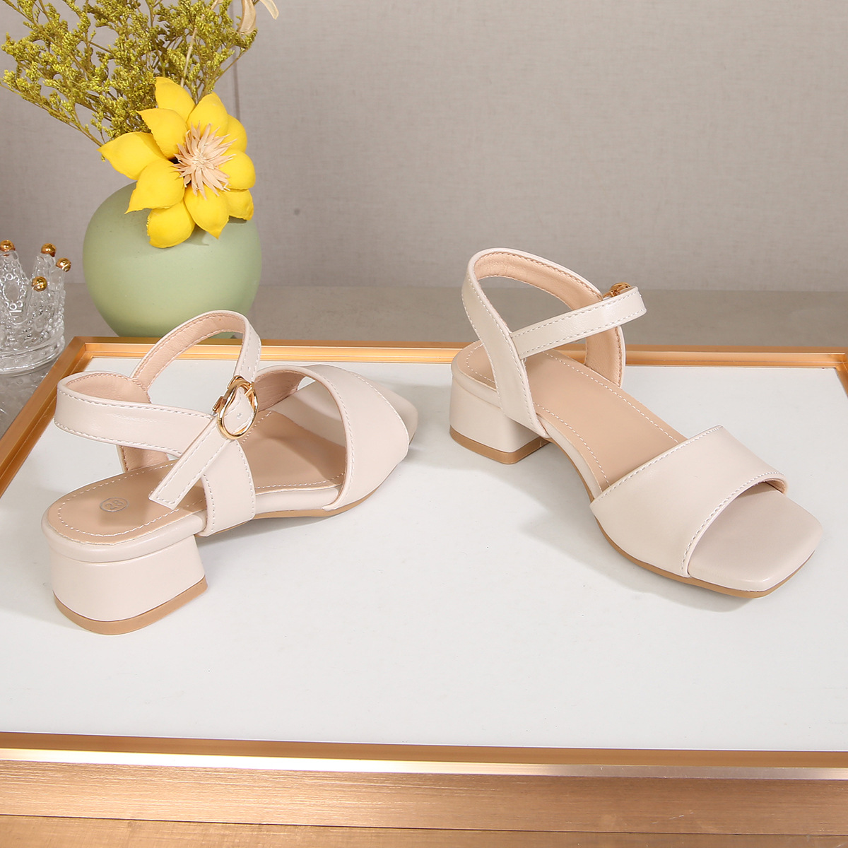 ガールズファッションスパンコールハイヒールサンダル、スクエアトゥワンラインバックルストラップヨーロッパとアメリカの貿易ハイヒールサンダル2025新しいスタイル厚い