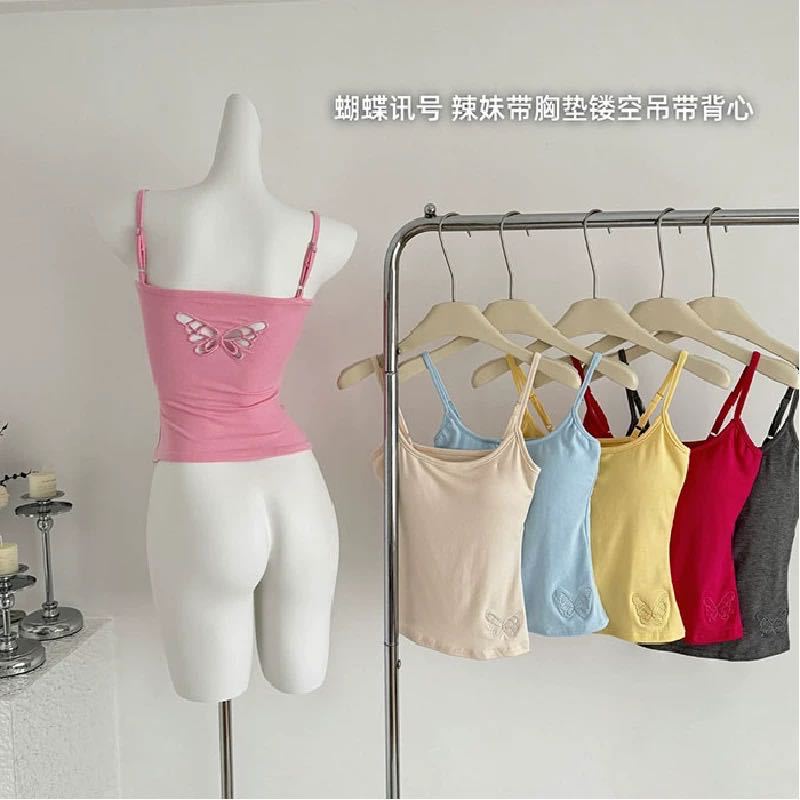 2025 新しい夏のスタイル純粋な欲望ホットガール蝶中空美しいバックキャミソール女性のアウターショートトップ