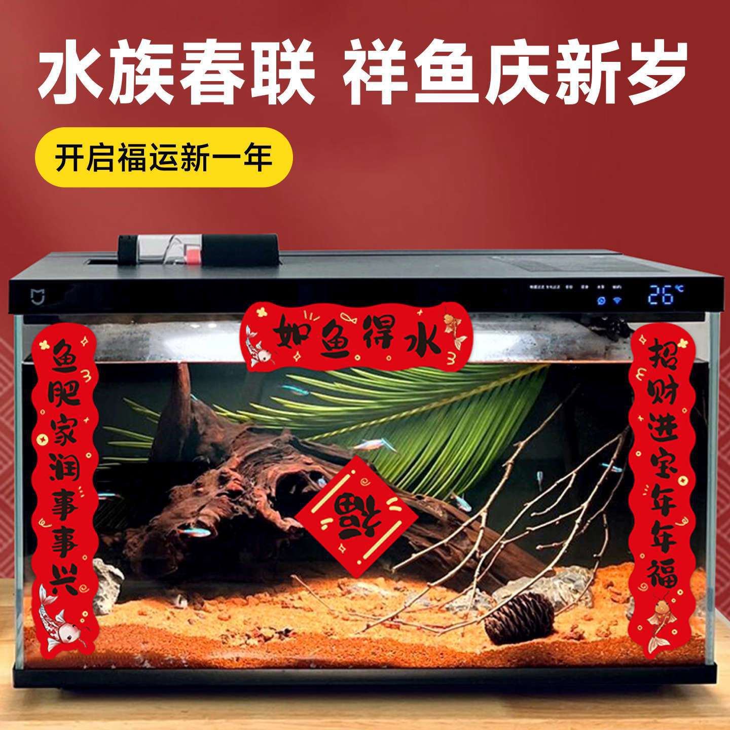 鱼缸对联2026新年马年贴纸喜庆装饰水族乌龟缸造景迷你宠物春联