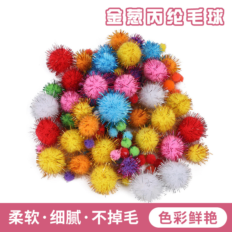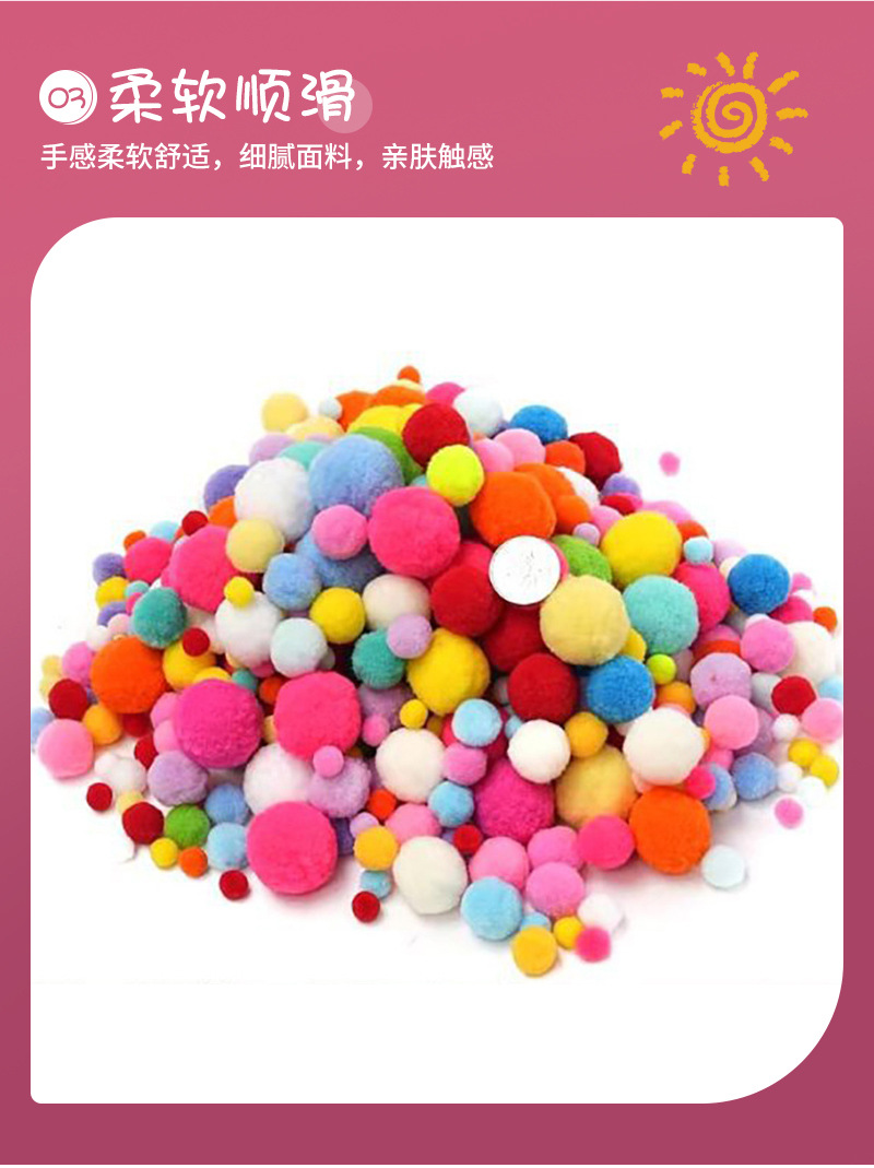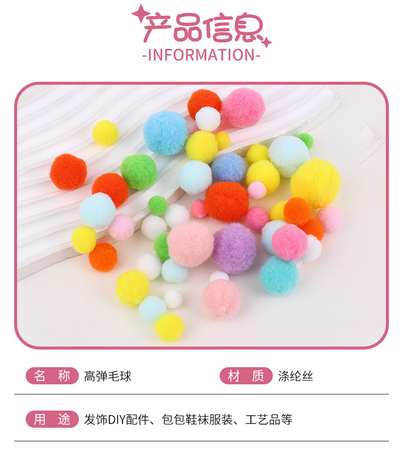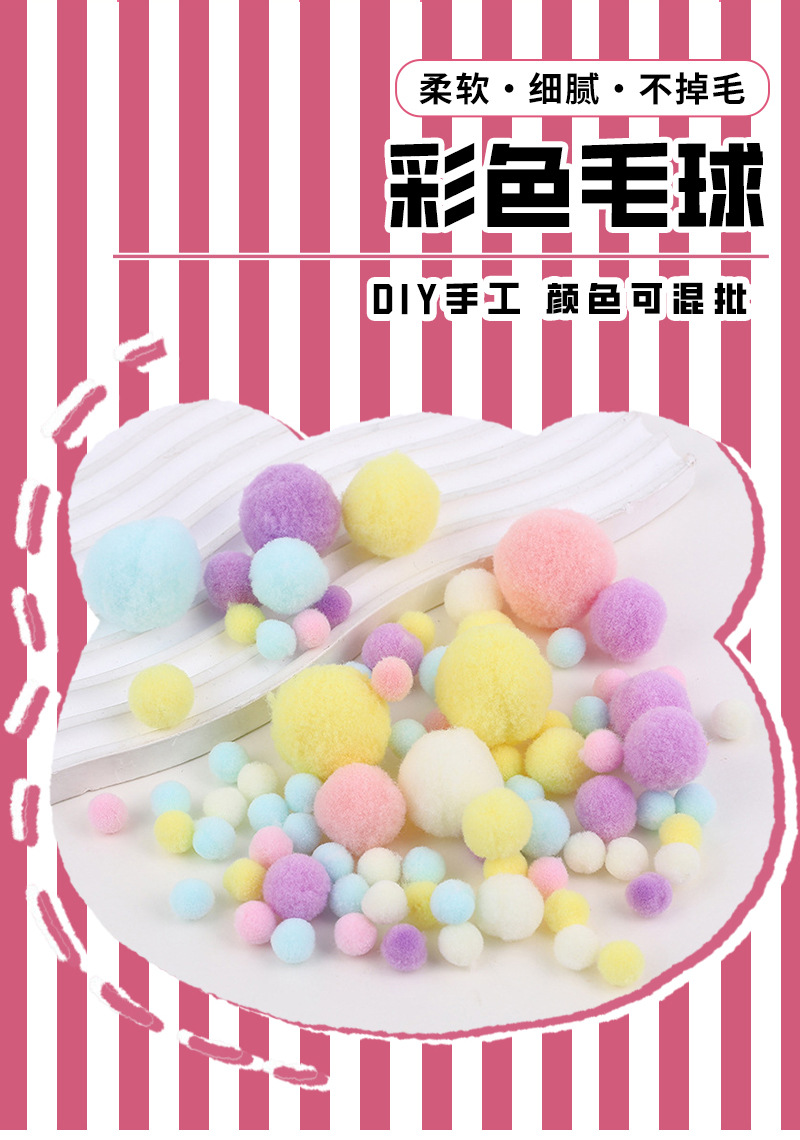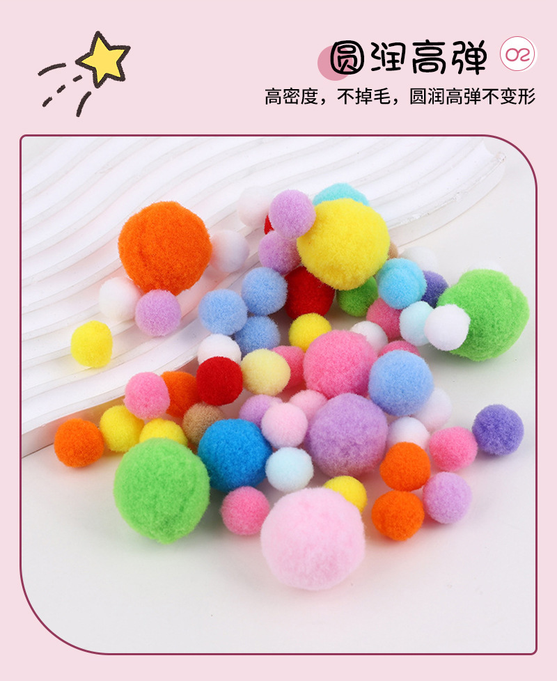 大中小混装カラー高弾毛玉diy毛毛毛玉早教幼稚園手作り材料