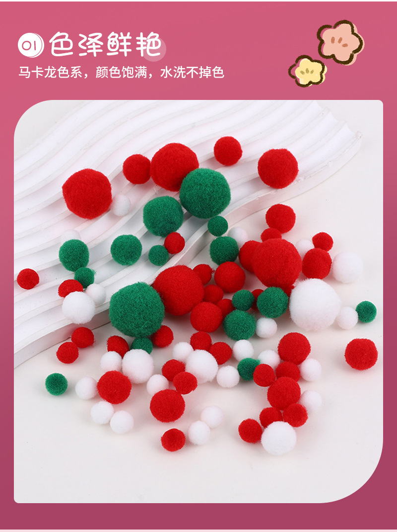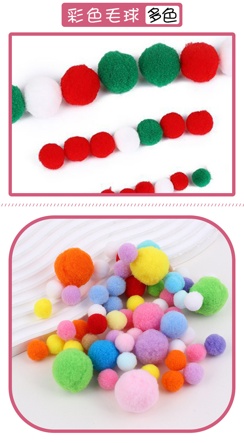 混色毛球高弹diy画制作材料彩色小球毛绒球装饰圣诞创意手工制作