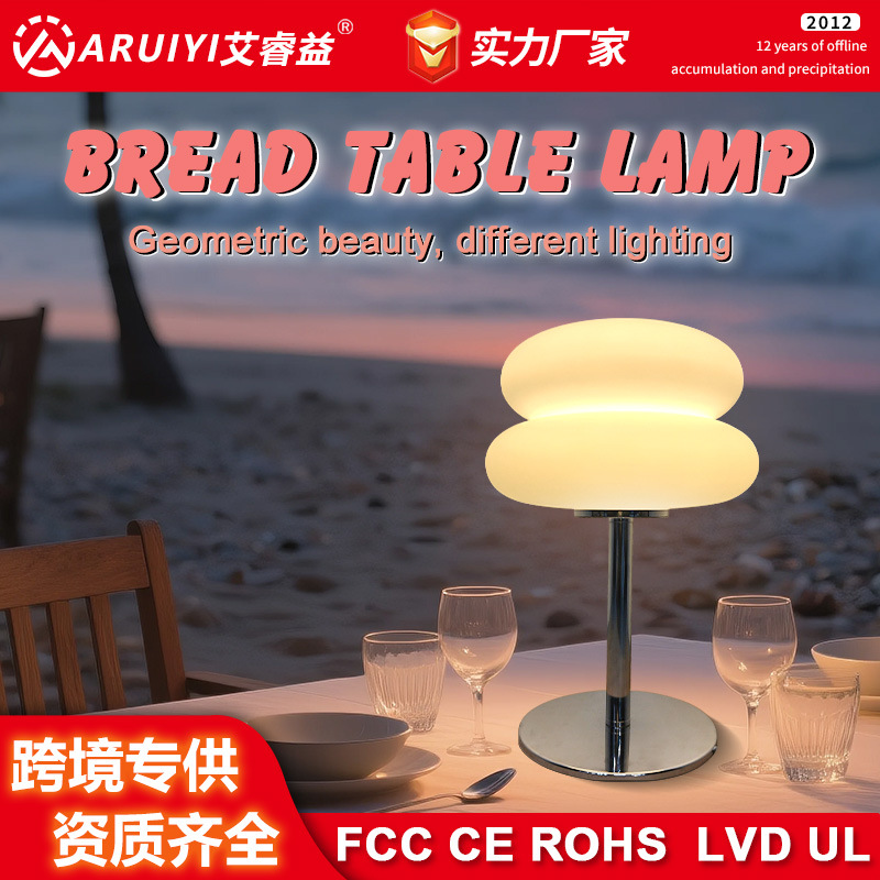 跨境爆款桌面小台灯卧室装饰台灯包豪斯后现代简约中古蛋挞小夜灯