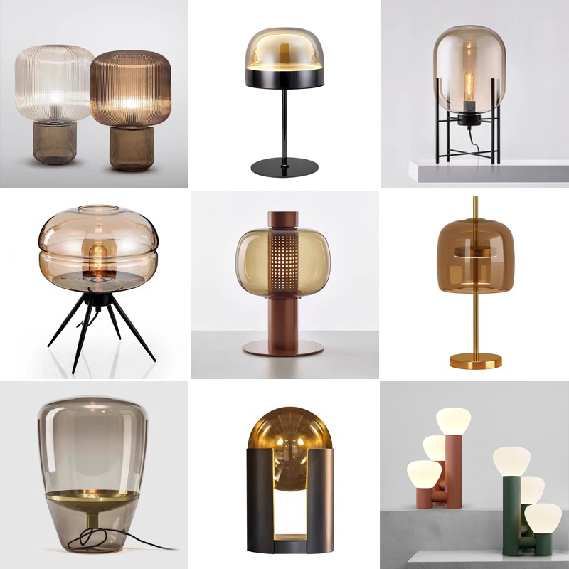 北欧装饰台灯简约酒店民宿设计师客厅卧室轻奢铁艺玻璃床头氛围灯
