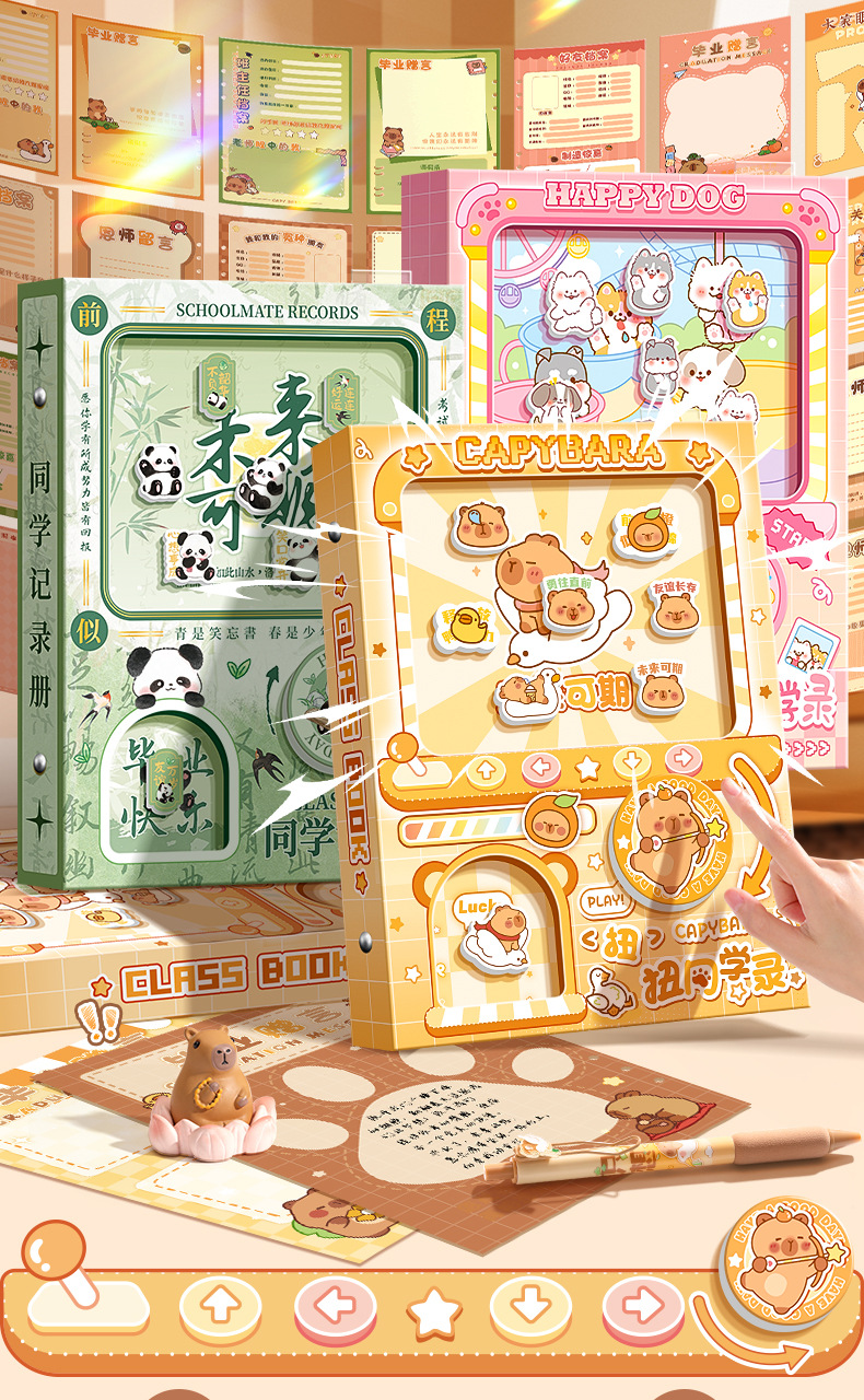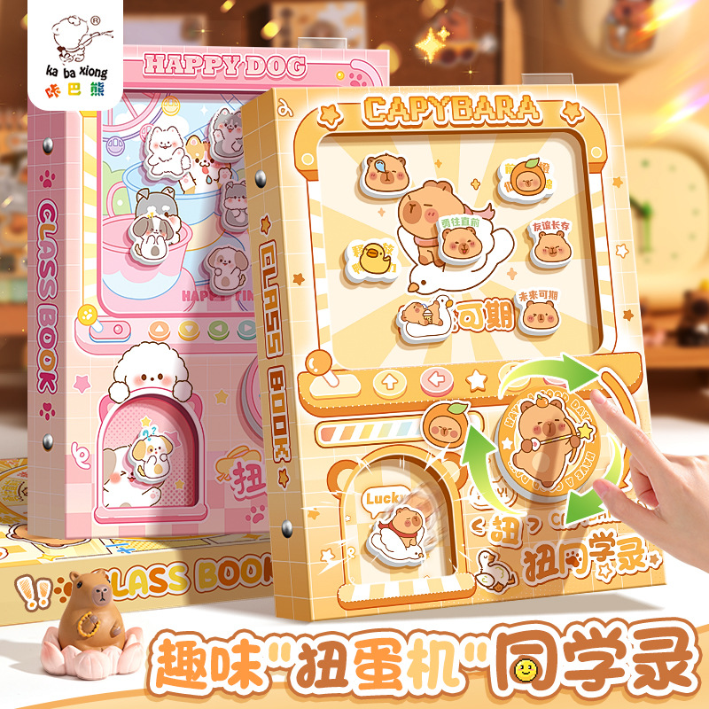 咔巴熊新款书双转盘扭蛋本学生笔记本日记本可爱卡通苹果小猫系列