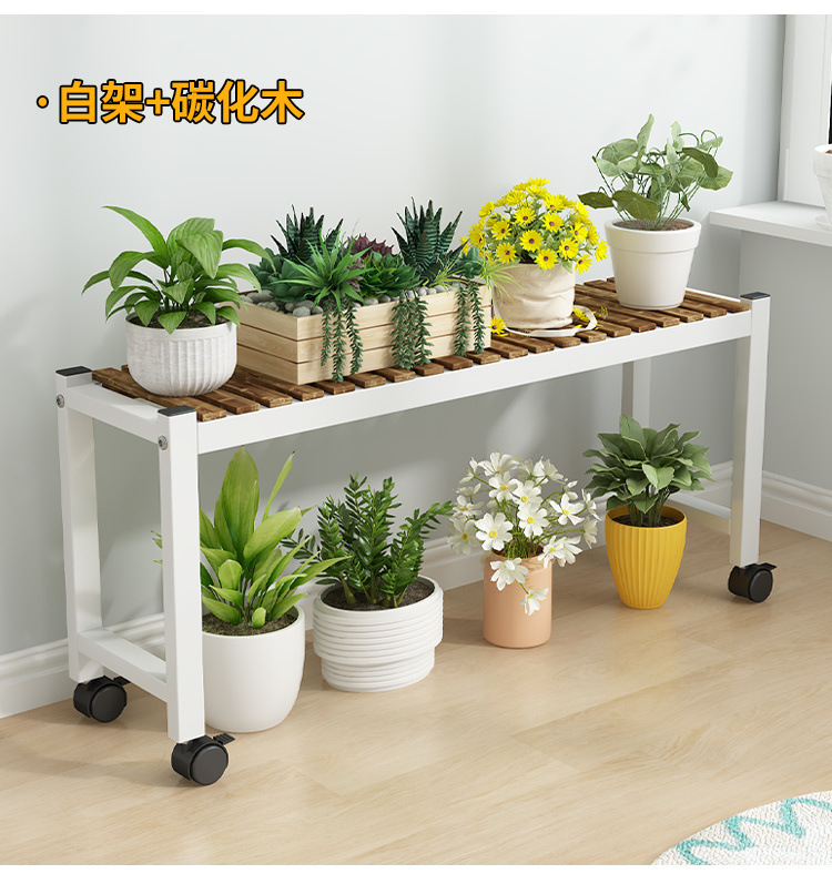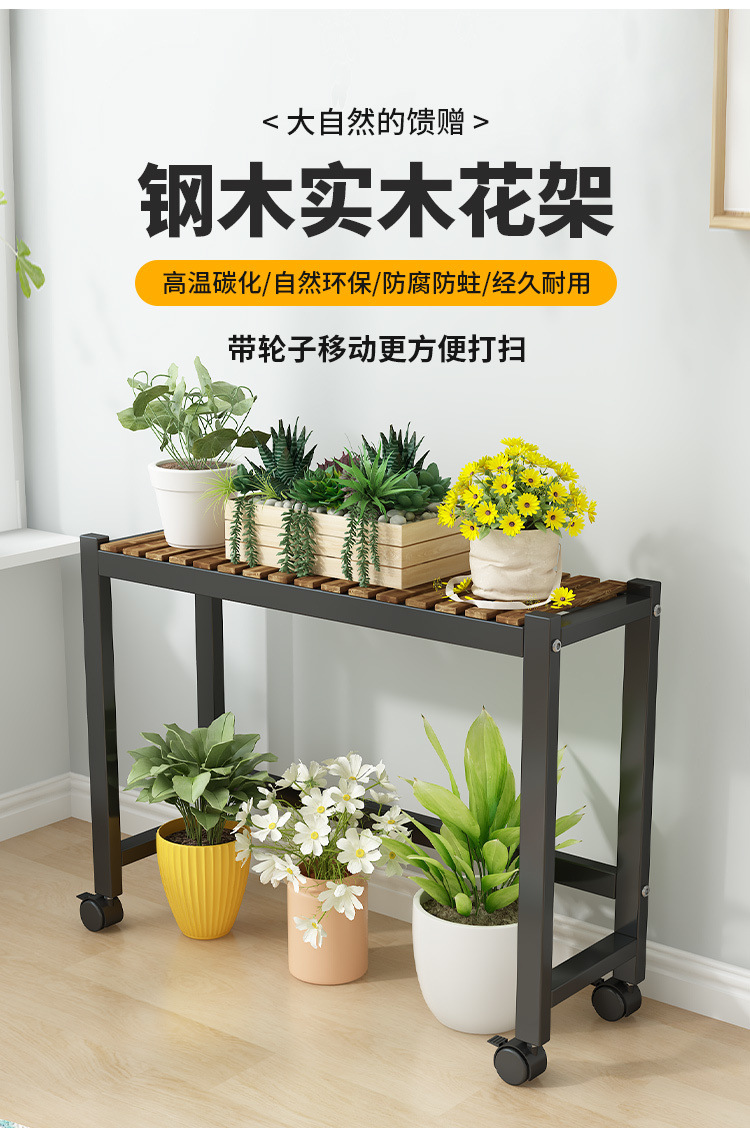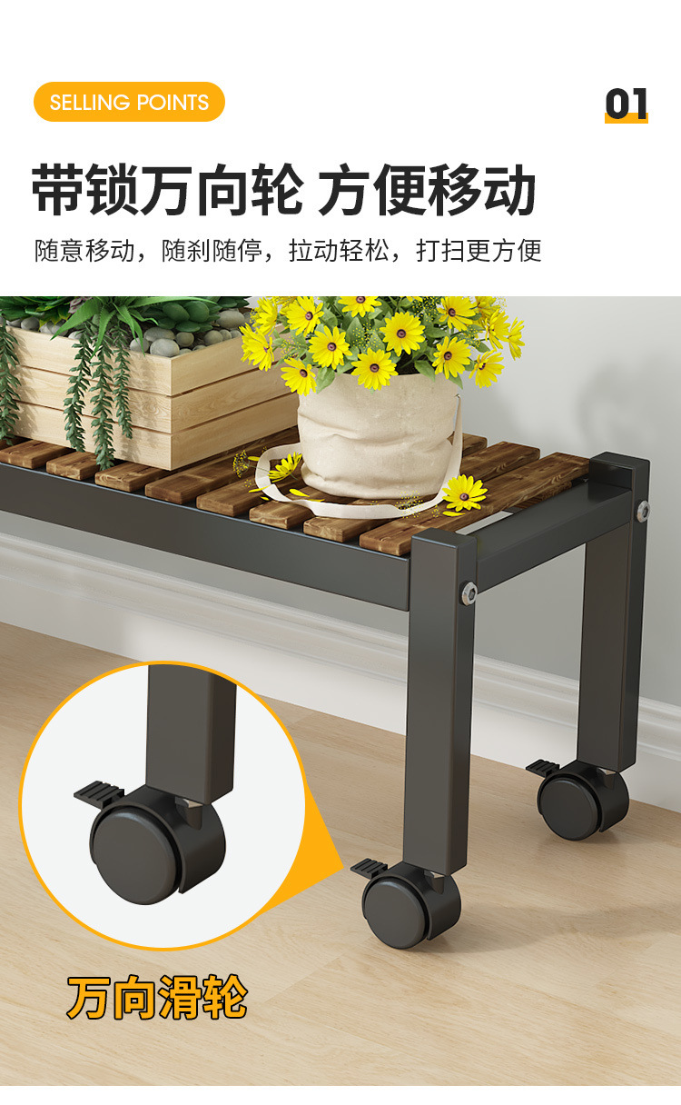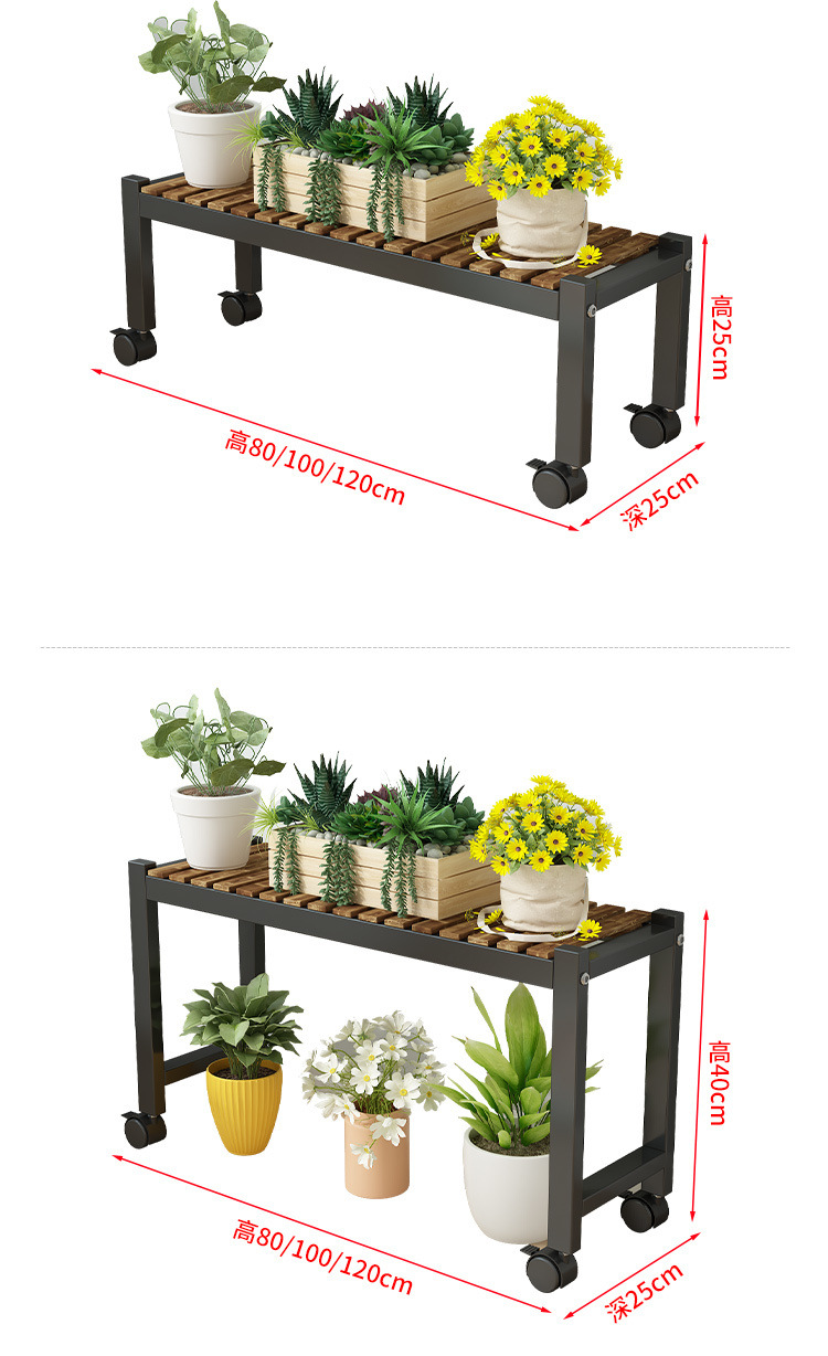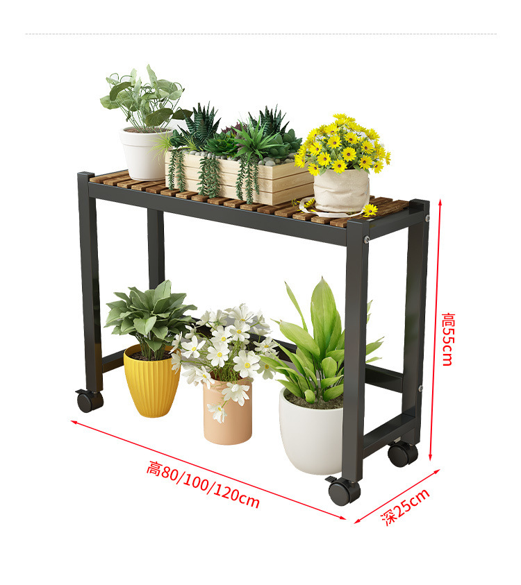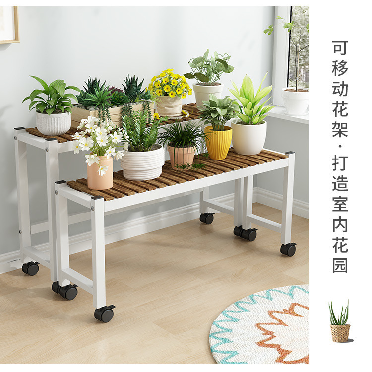 車輪付きバルコニー無垢材フラワースタンドリビングルーム床置き新しいスツールモバイルバルコニー収納ラック植物多層植木鉢
