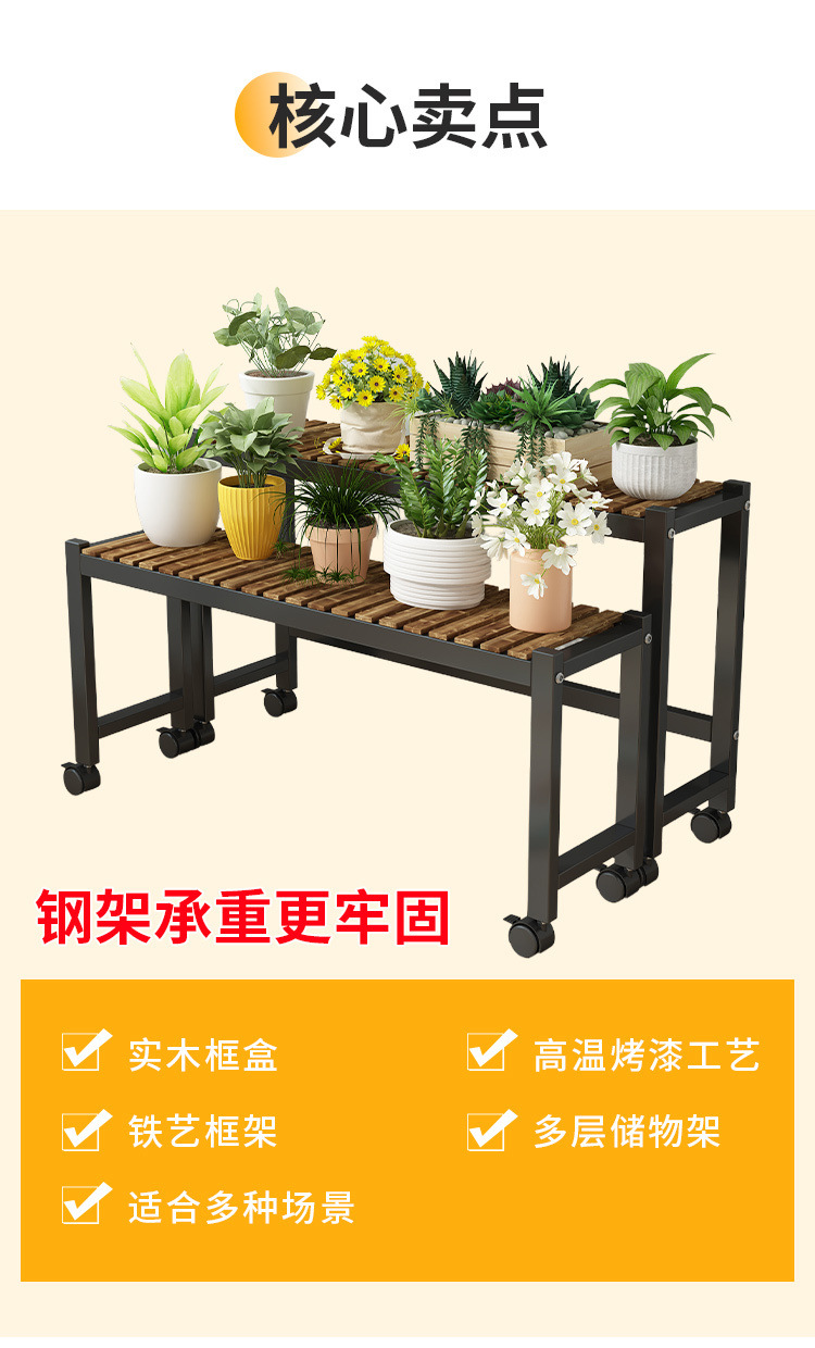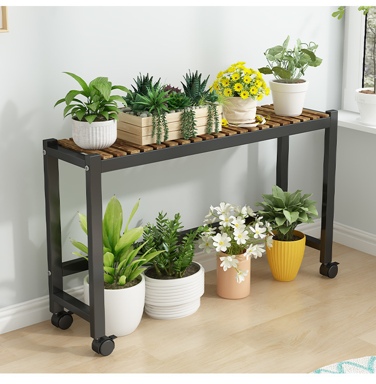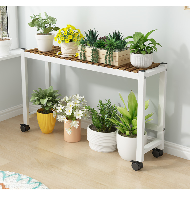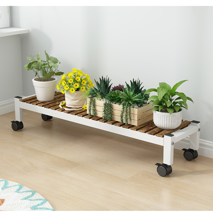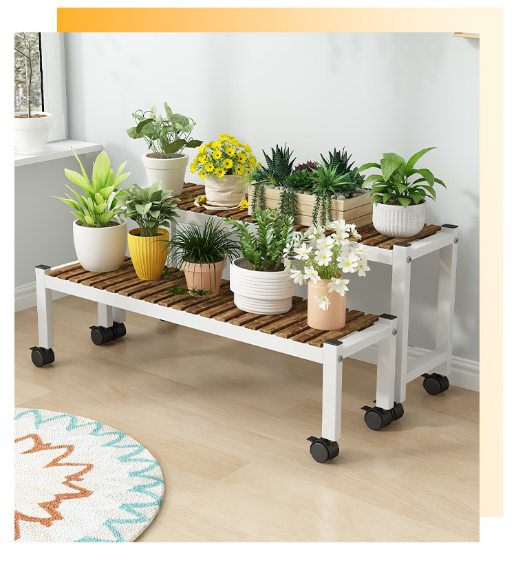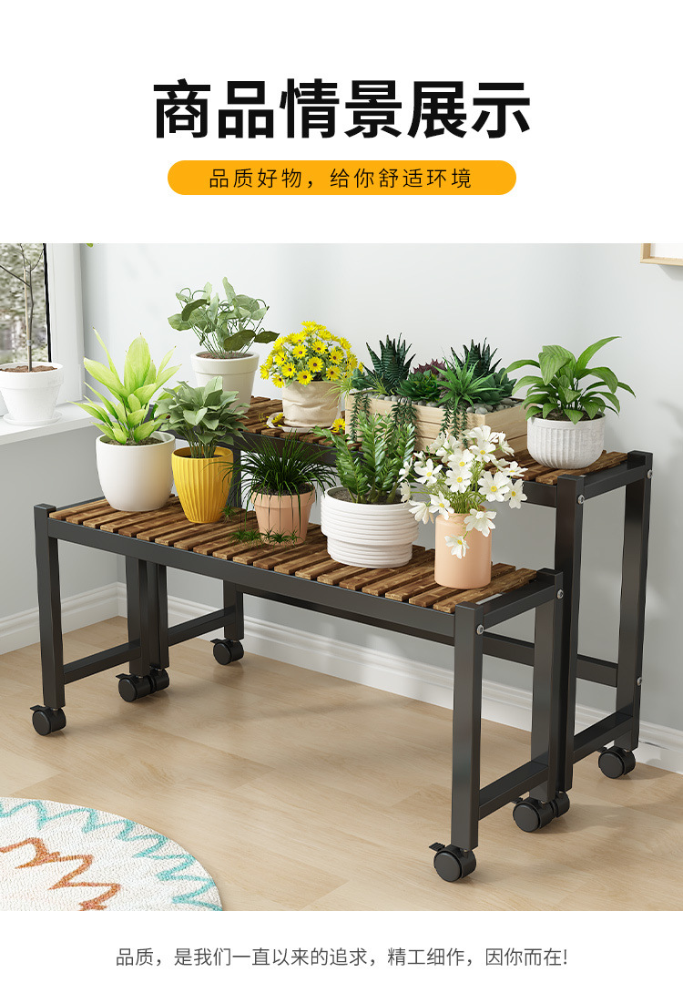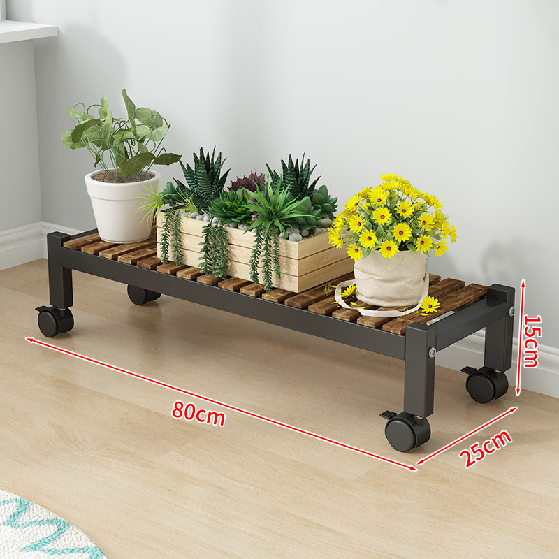 車輪付きバルコニー無垢材フラワースタンドリビングルーム床置き新しいスツールモバイルバルコニー収納ラック植物多層植木鉢