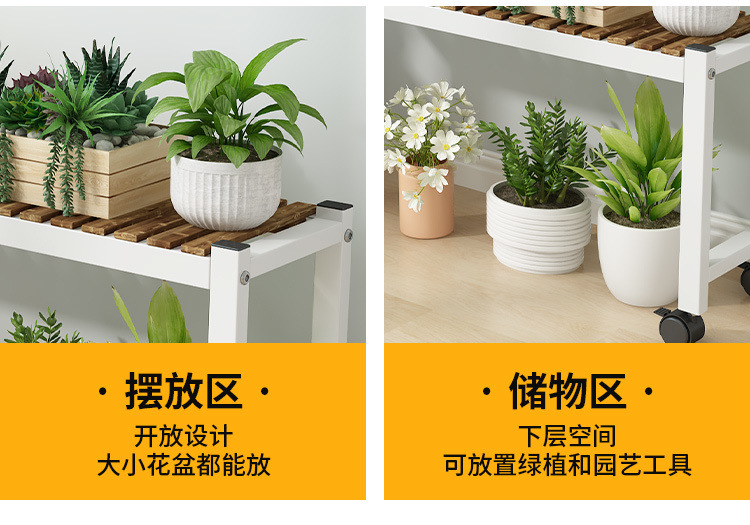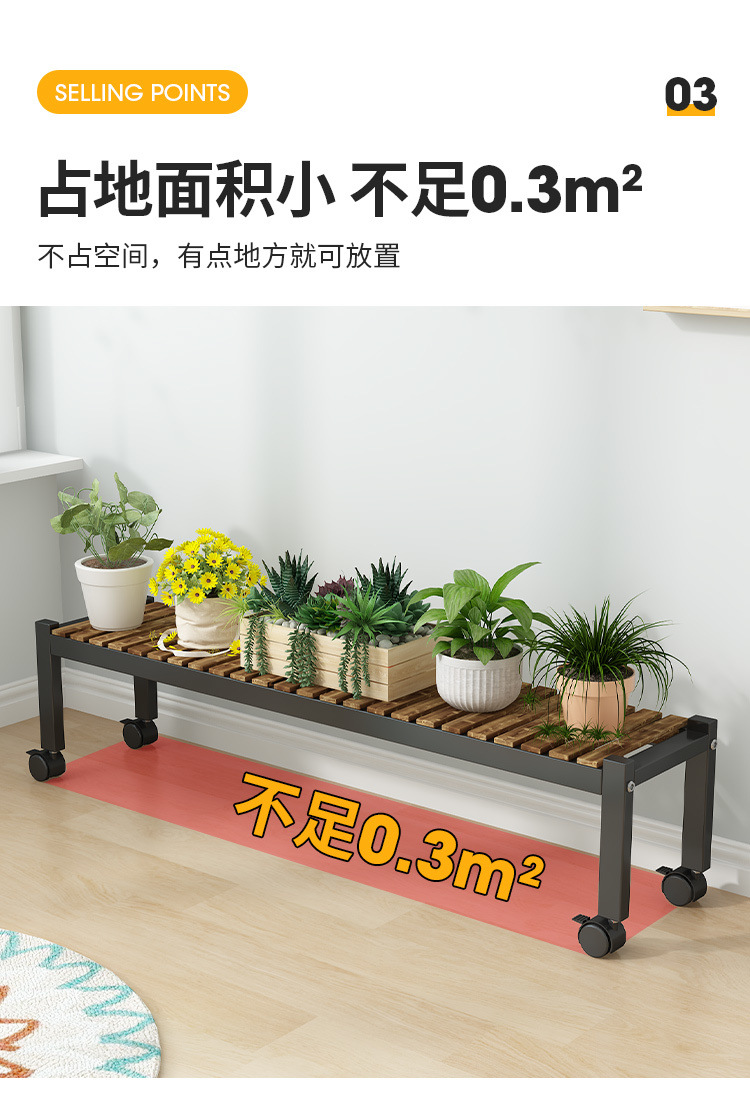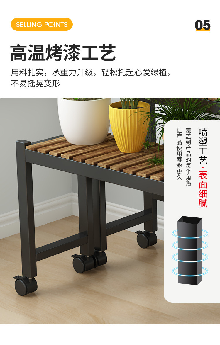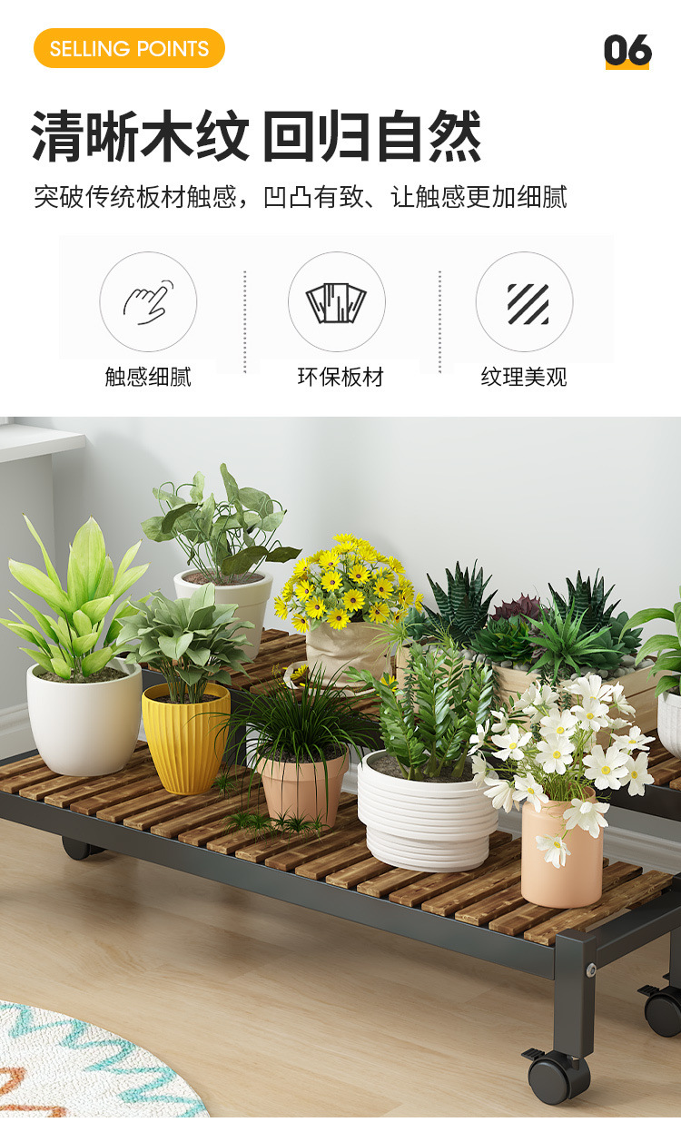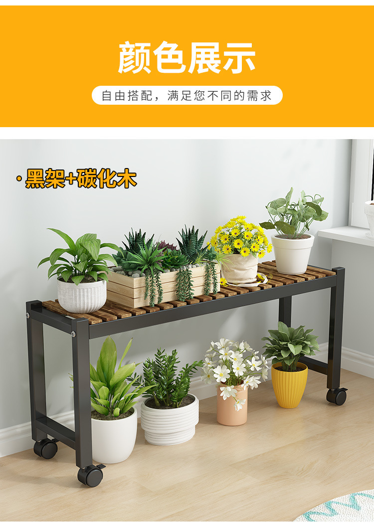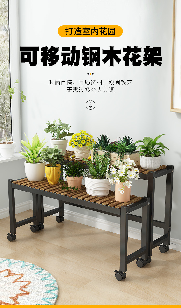 車輪付きバルコニー無垢材フラワースタンドリビングルーム床置き新しいスツールモバイルバルコニー収納ラック植物多層植木鉢