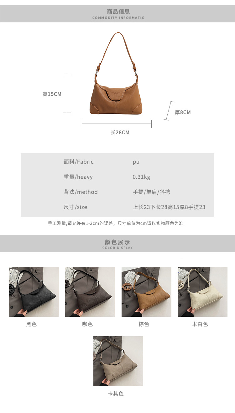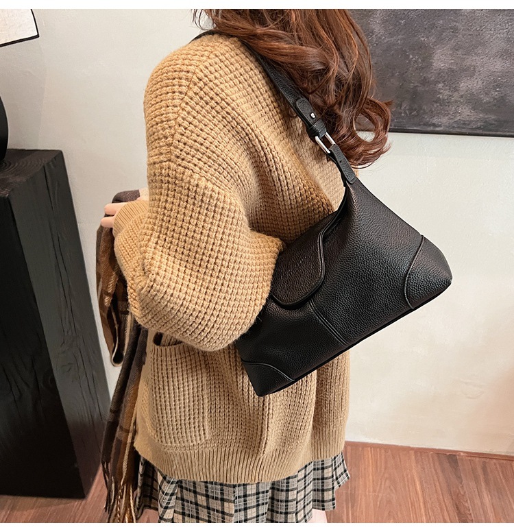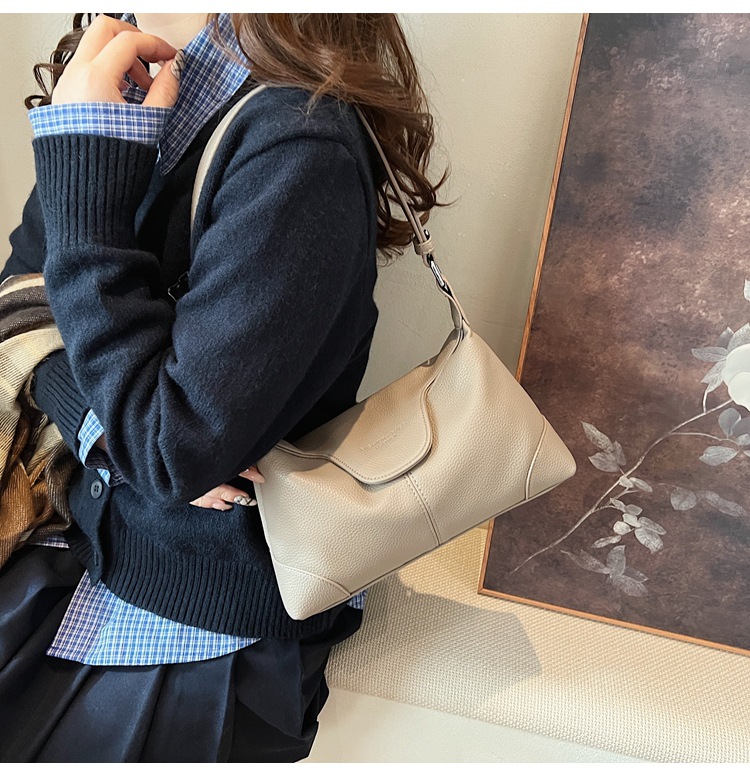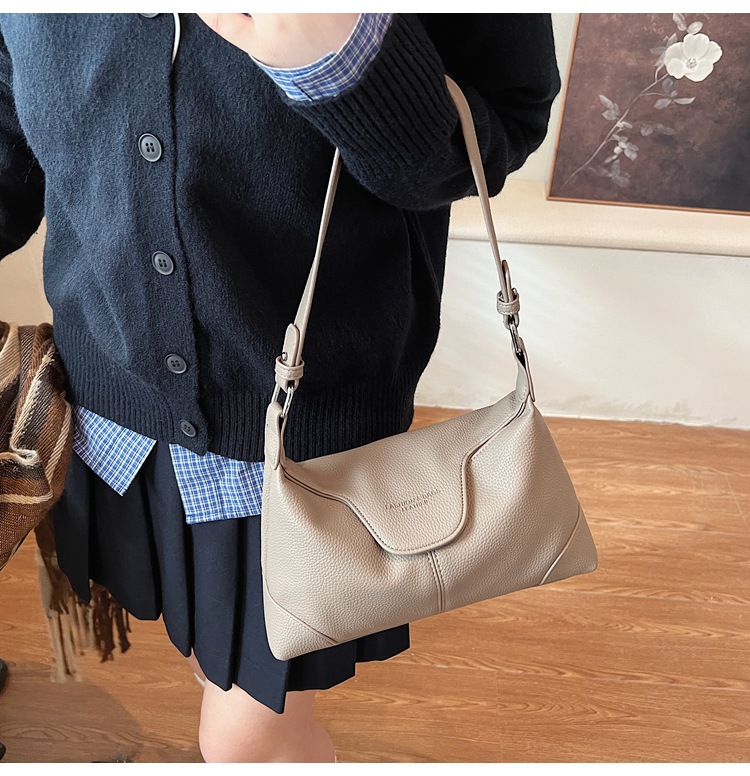 韓国版のシンプルな無地の脇の下バッグ女性のための 2025 春夏人気の気質多用途通勤ショルダークロスボディバッグ