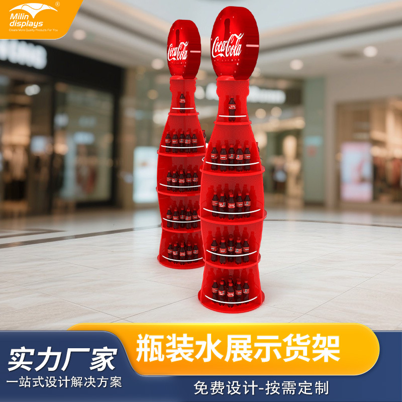 ボトル入りウォーター、ミネラルウォーターボトル、金属製ディスプレイラック、飲料棚、食品スナック、スーパーコンビニ、発光ディスプレイラック