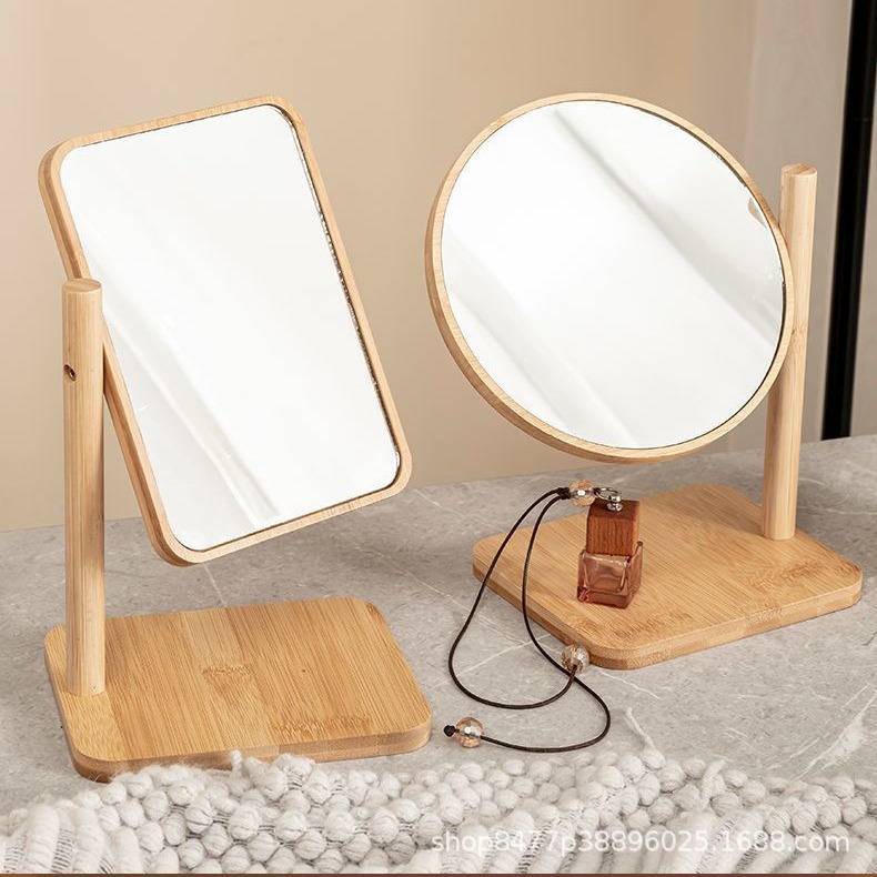 デスクトップ化粧鏡ネット赤楠竹回転可能学生寮大型家庭用オフィスガラス化粧鏡卸売り
