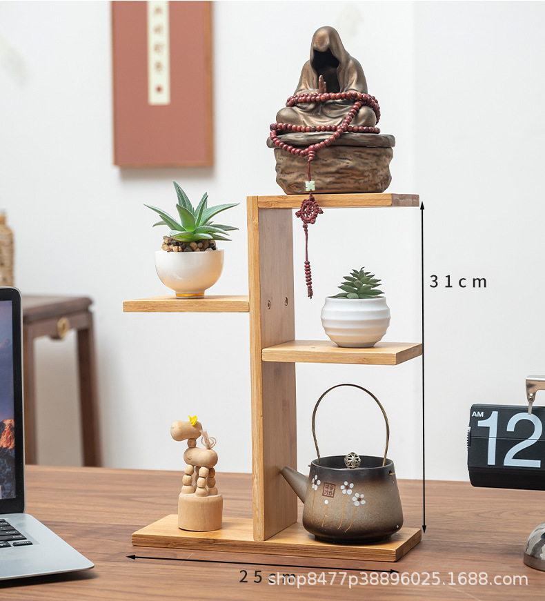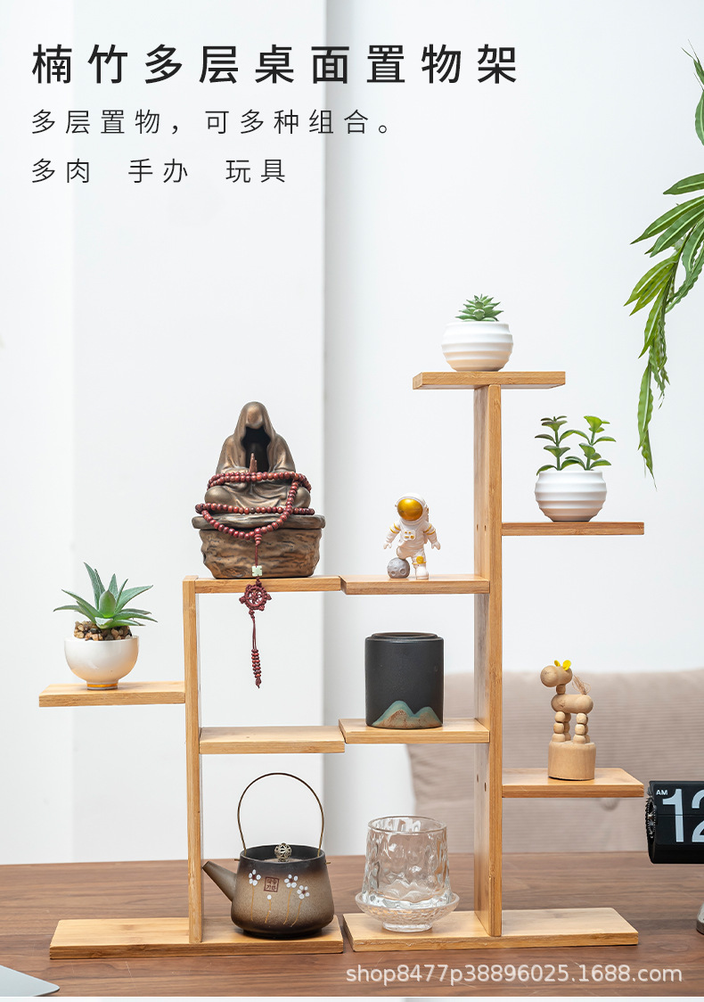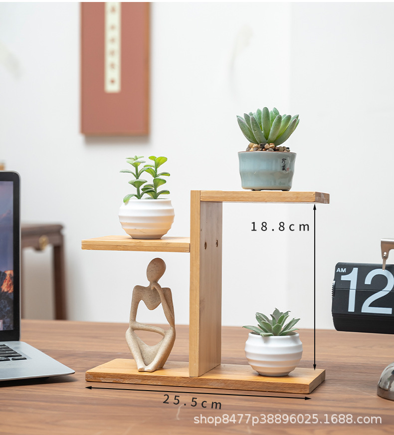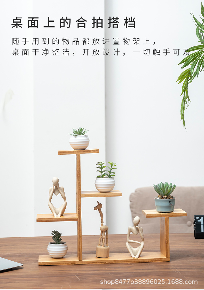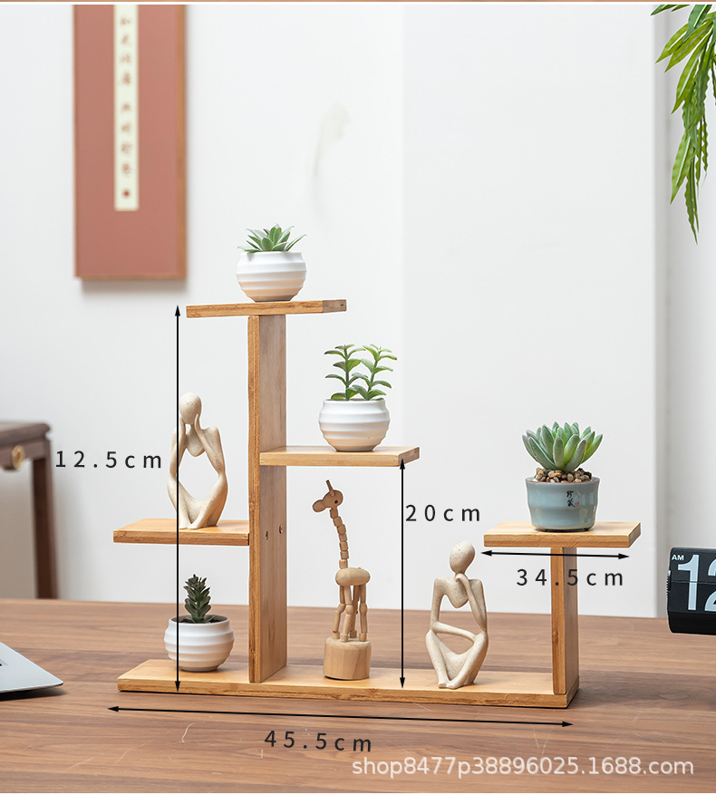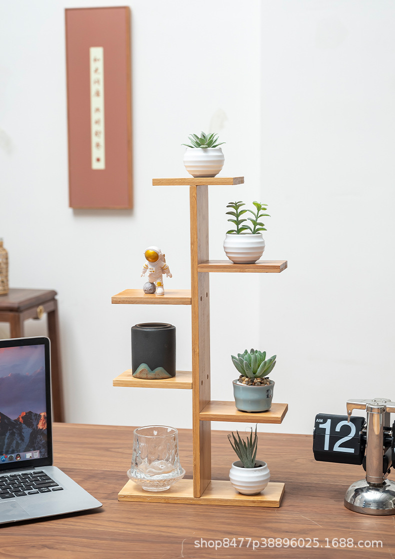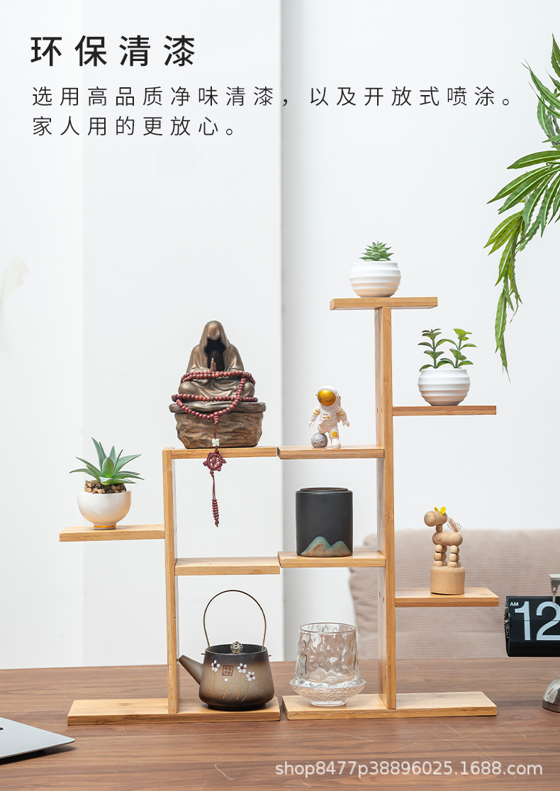 2025 クロスボーダーラベル竹多層デスクトップフラワースタンド多肉植物ディスプレイスタンドオフィスリビングルーム可動
