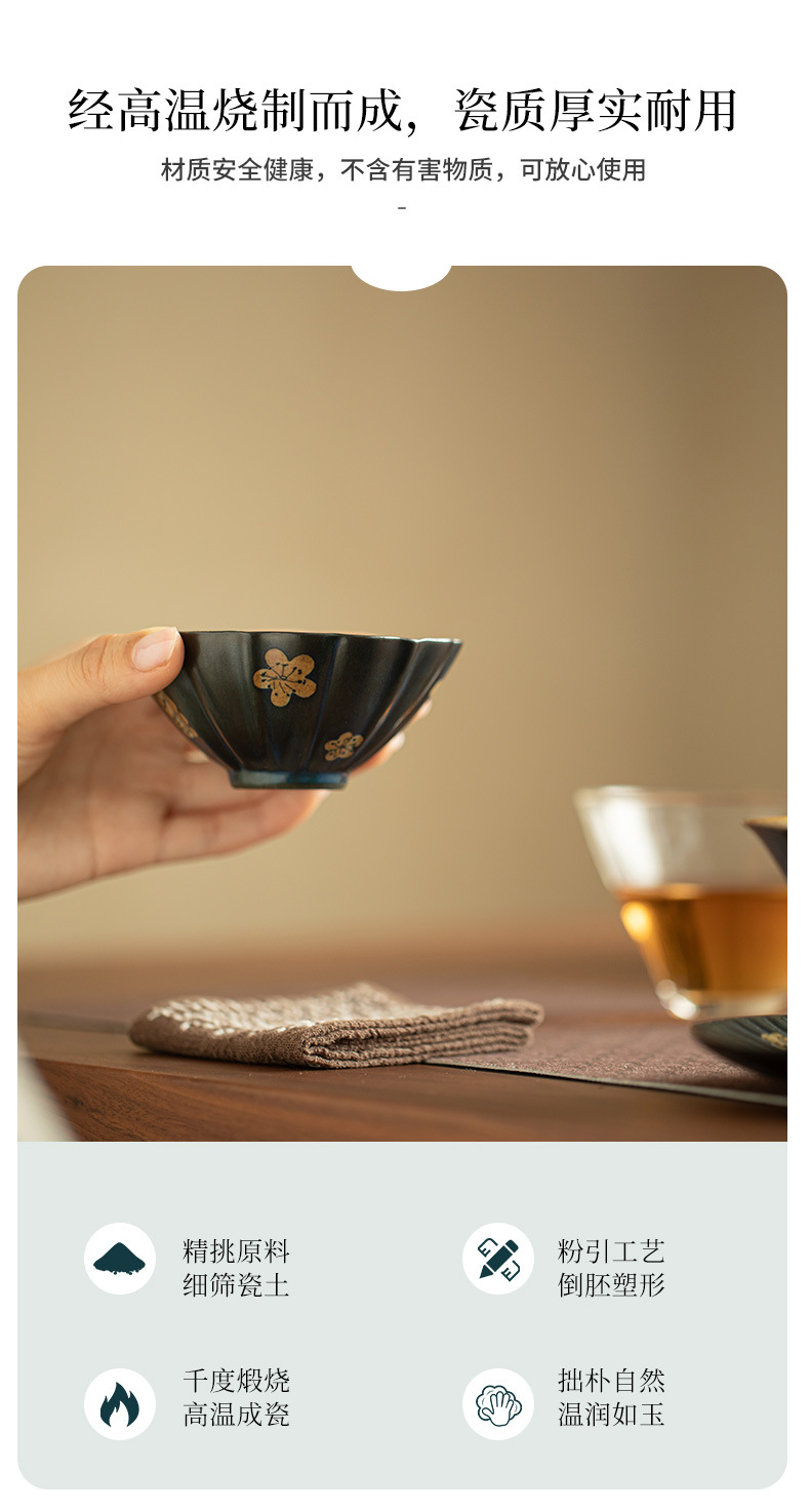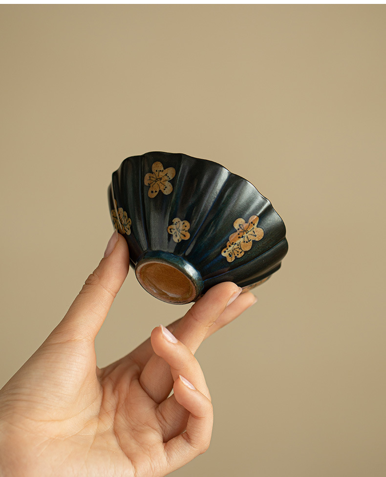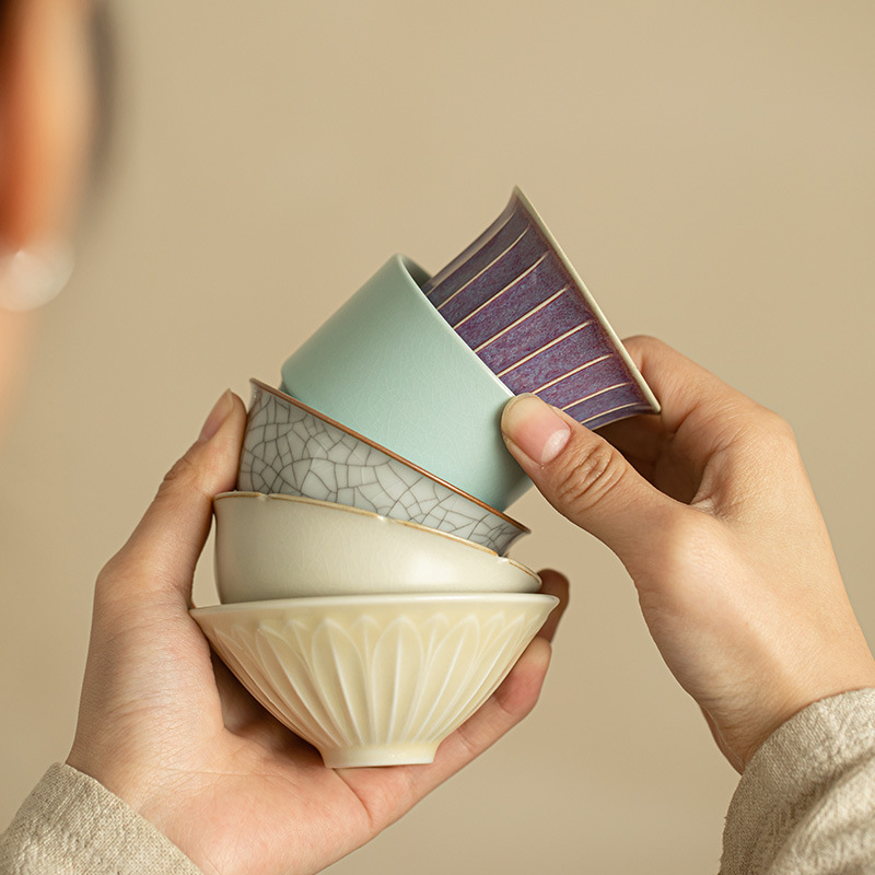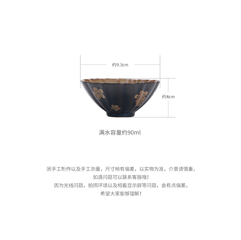 汝窯粉彩九桃花弁茶杯陶磁器茶器シンプルな主人杯開片は工夫茶器品茗杯を養うことができる