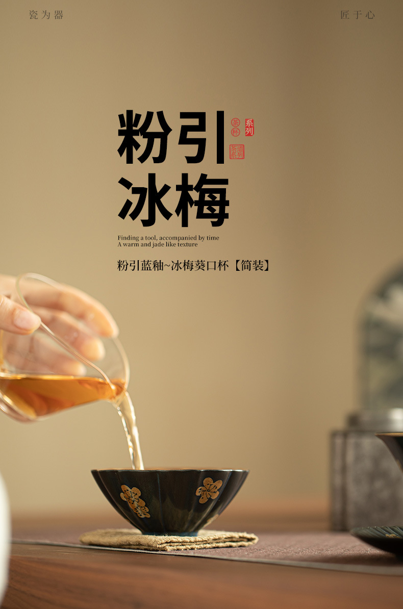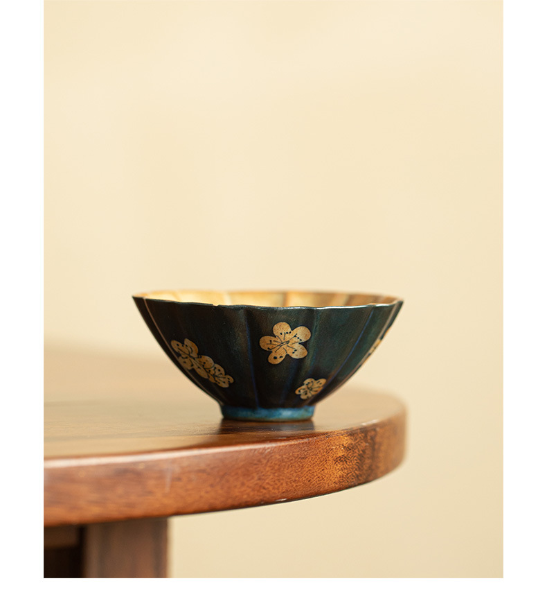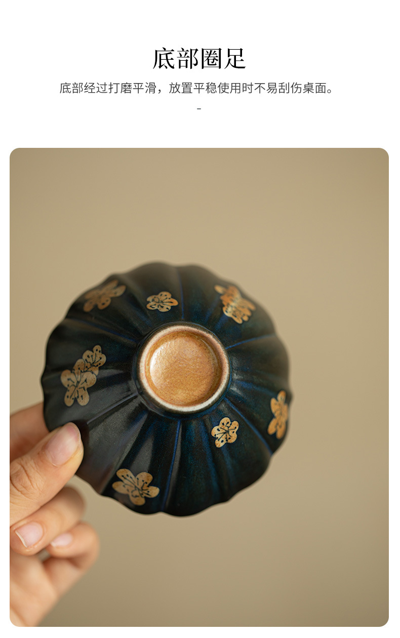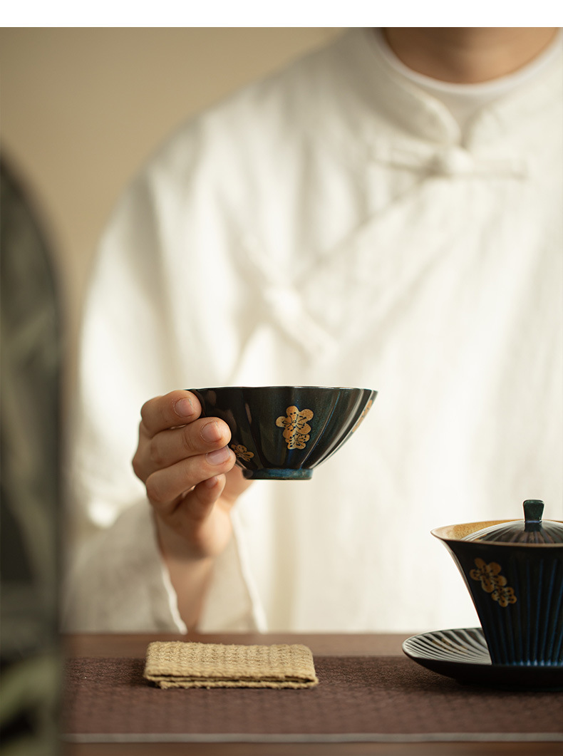 汝窯粉彩九桃花弁茶杯陶磁器茶器シンプルな主人杯開片は工夫茶器品茗杯を養うことができる