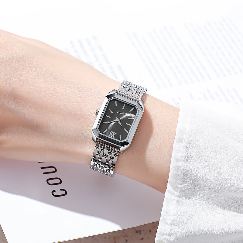 2025新款轻奢钢带女士手表 女学生时尚简约方形石英腕表批发