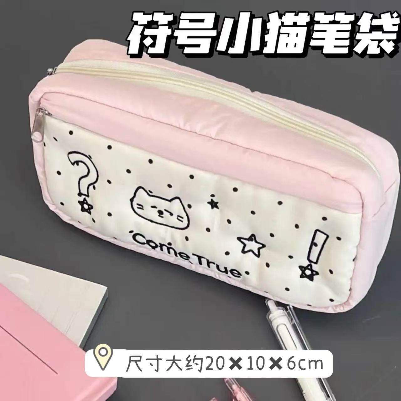 可爱波点符号小猫大容量笔袋ins高颜值铅笔袋小众学生文具收纳袋