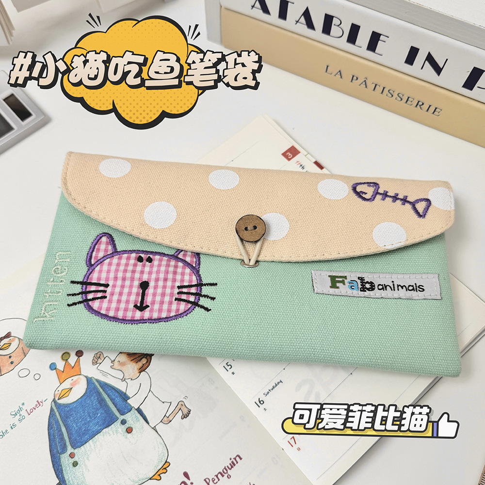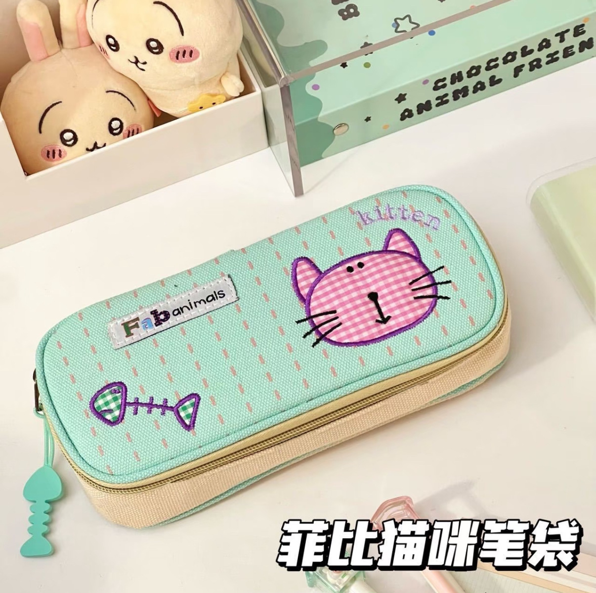 かわいいフィービー猫刺繍筆袋小紅書高颜値大容量学生文房具箱鉛筆ケース収納袋